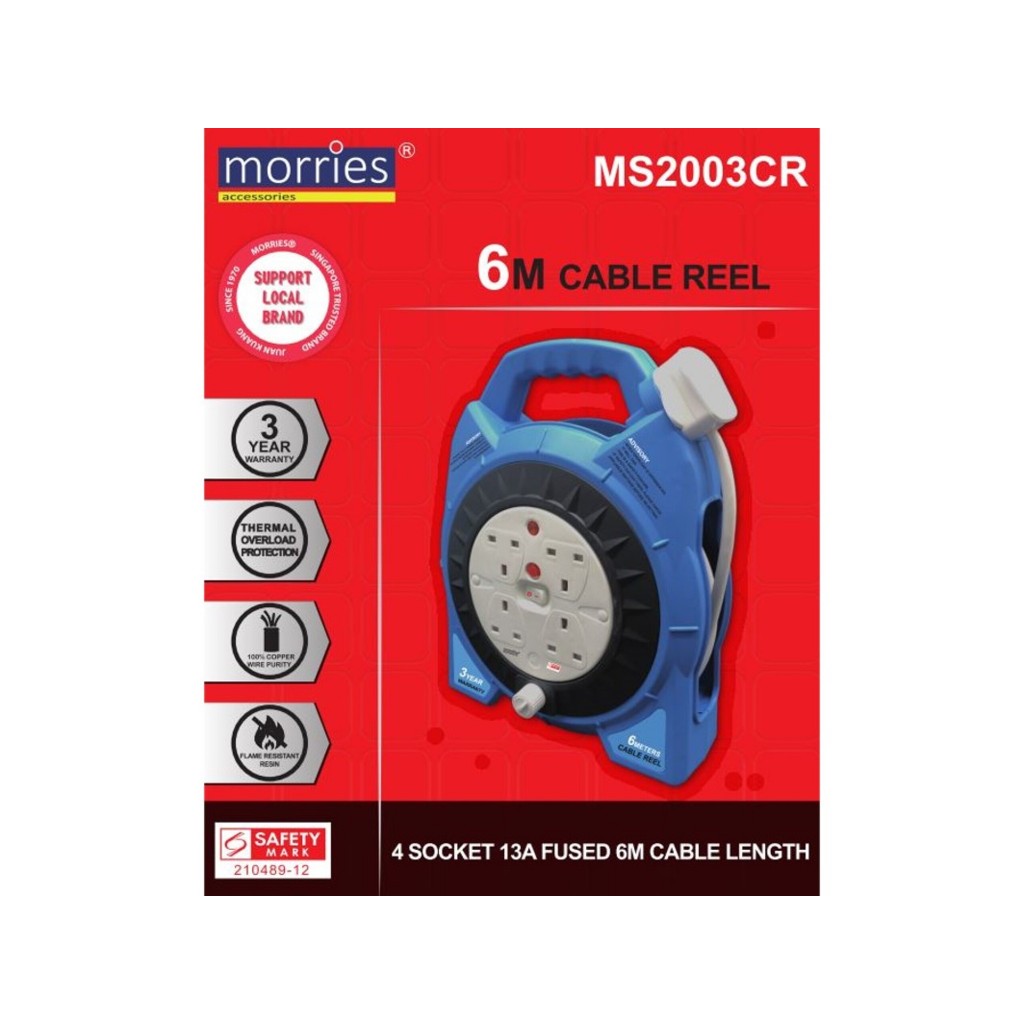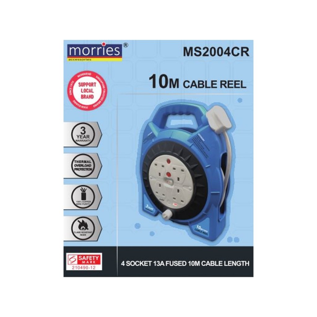 Morries 4 Way Socket 6M / 10M Cable Reel MS2003CR / MS2004CR