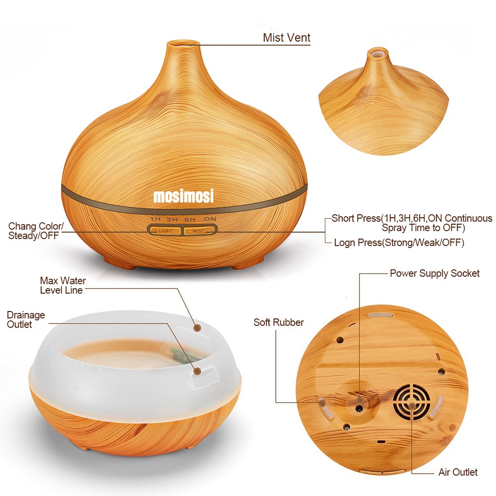 Mosimosi 550ml Aroma Air Humidifier Air Purifier Essential Oil Diffuser Ultrasonic Cool Mist Maker