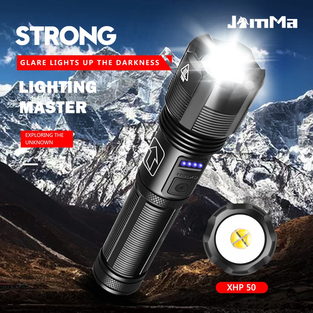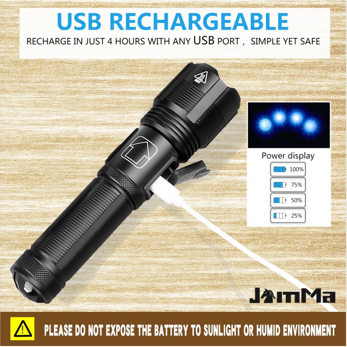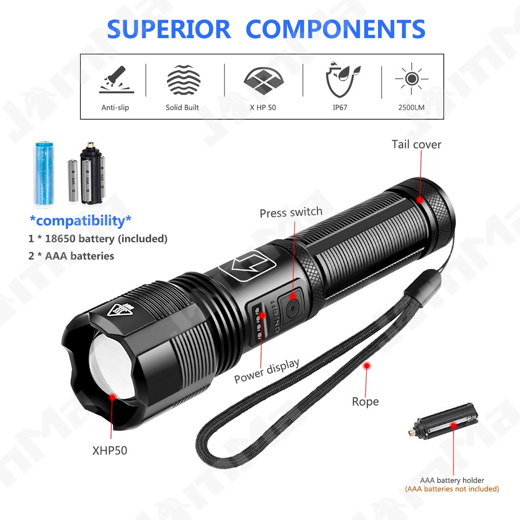Most Powerful XHP50 High Lumens Tactical Flashlight, Rechargeable, Super Bright Flash Light, Waterproof, Zoomable, Best Camping, Emergency & Outdoor with USB Charger & 18650Battery Included