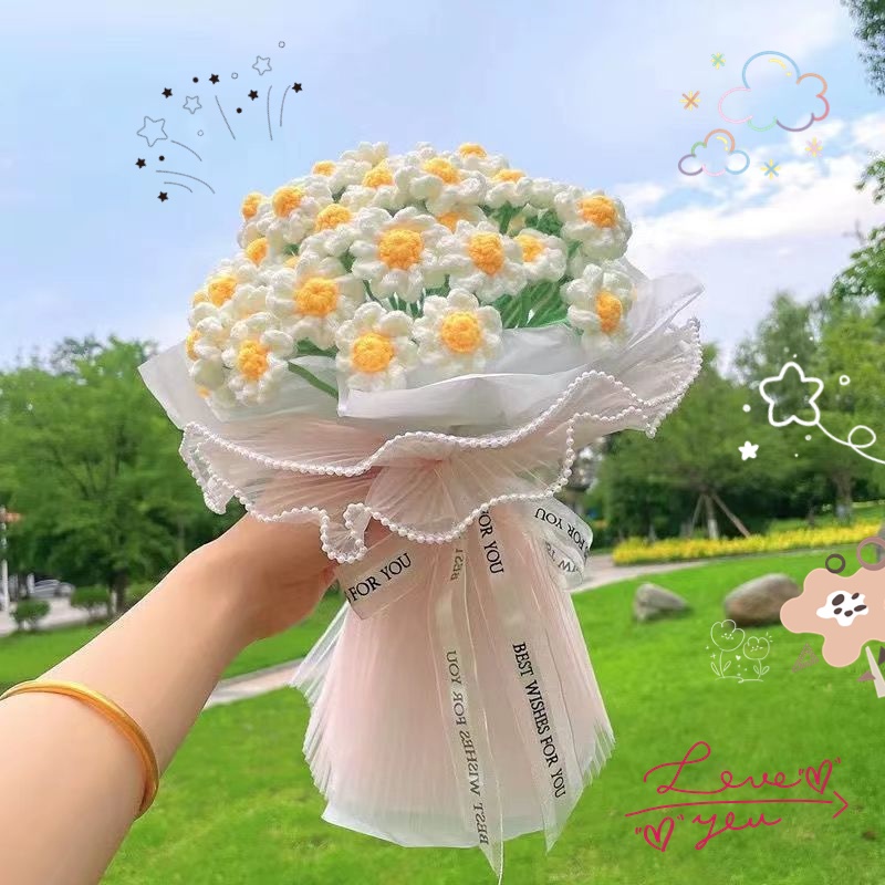 Mother's Day Bouquet Gift Crochet Sunflower Flower Hand-Woven Daisy Wool Bouquet Handmade Crochet Flowers Teachers Day Flowers Teachers Day Gift