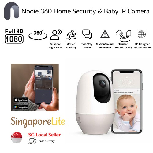 Motion Tracking Nooie 360 Home Security Camera, Baby and Pet Camera, Wifi, Full HD 1080P, Motion/Sound Detection