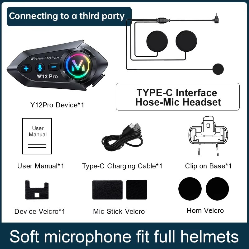 Motorcycle Helmet Intercom Bluetooth Headset Handsfree Wireless Waterproof Interphone Support connect to third party intercom
