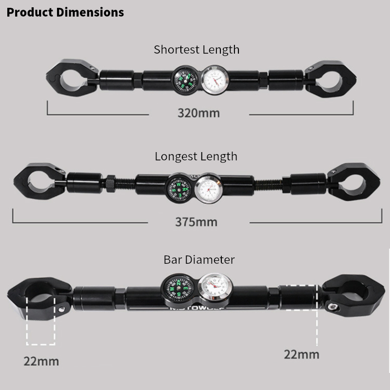 Motowolf Handlebar Extension Clamp with Clock and Compass