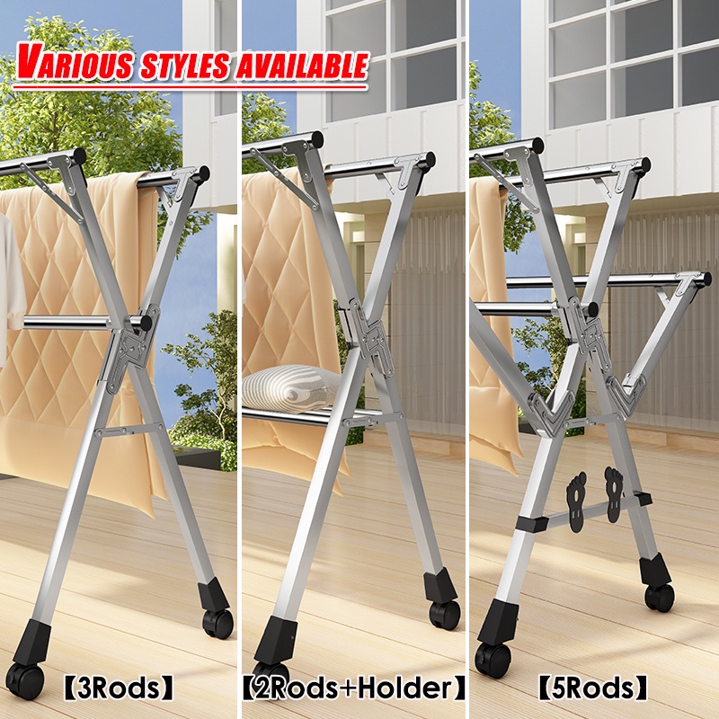 Movable Metal Clothes Pole Rack Drying Rack Laundry Rack Stand with Wheels Bedroom Outdoor Drying Pole Hanger Clothes Drying Organizer Rack - 2/3/5 Pole
