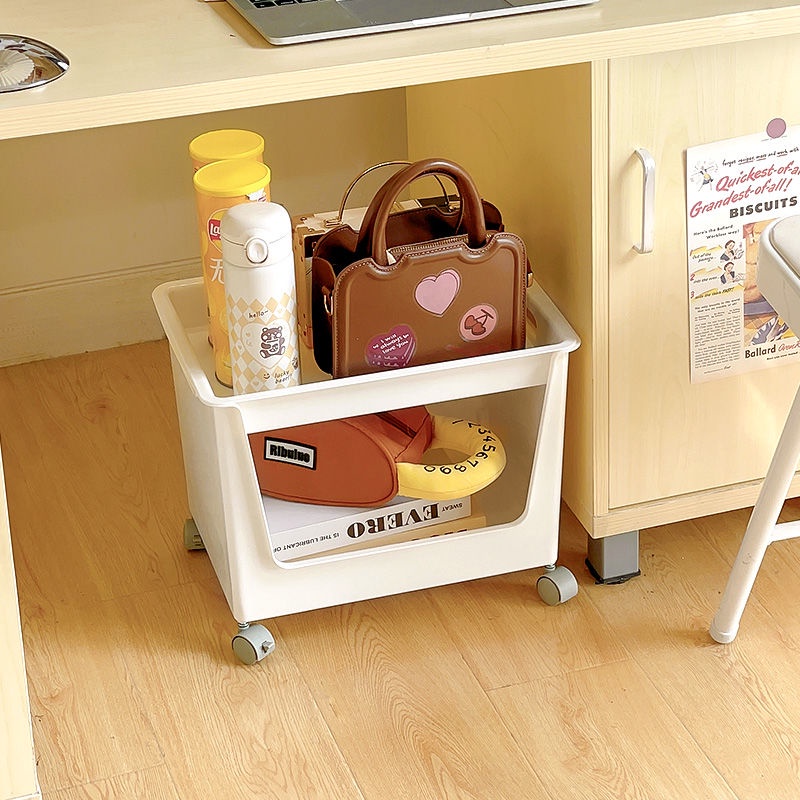 Movable Plastic Storage Rack under the Table Storage Basket Bag Rack Bookshelf Basket