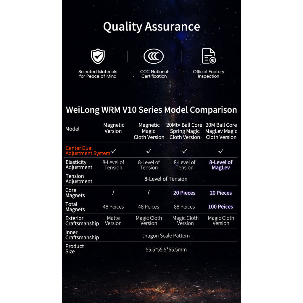 Moyu Cube Weilong WRM V10 Magnetic 3x3 Speed Cube, Stickerless, 2024 Elasticity Adjustment System, Superior Stability, Includes Cube Stand & Instructions, Kid Gift