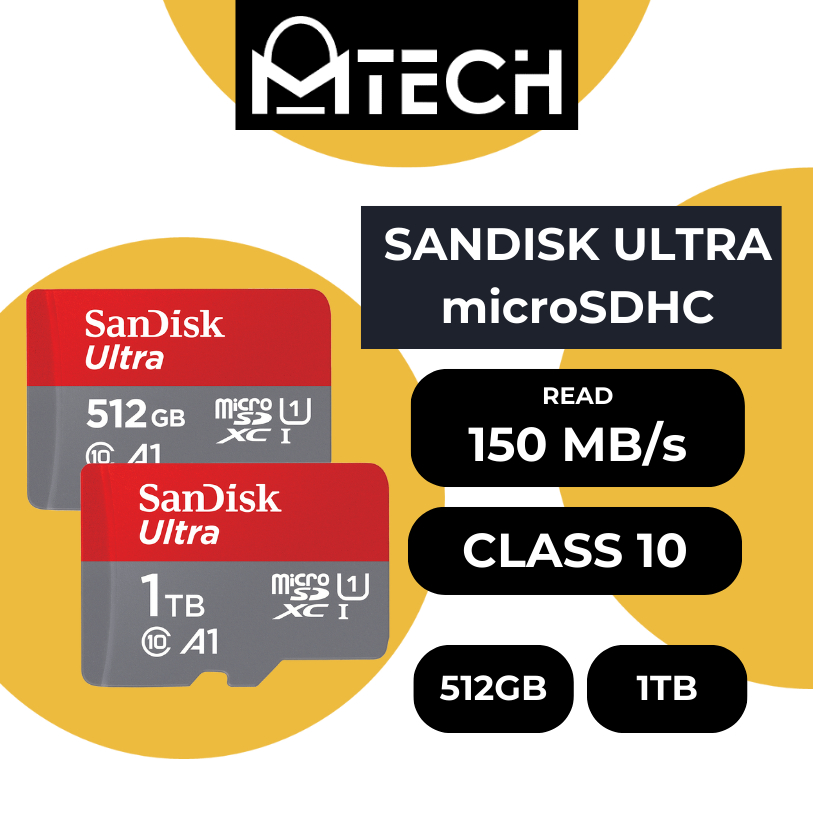 Mtech SanDisk Ultra 512GB 1TB microSD USH-1 150mb/s A1 Memory Card