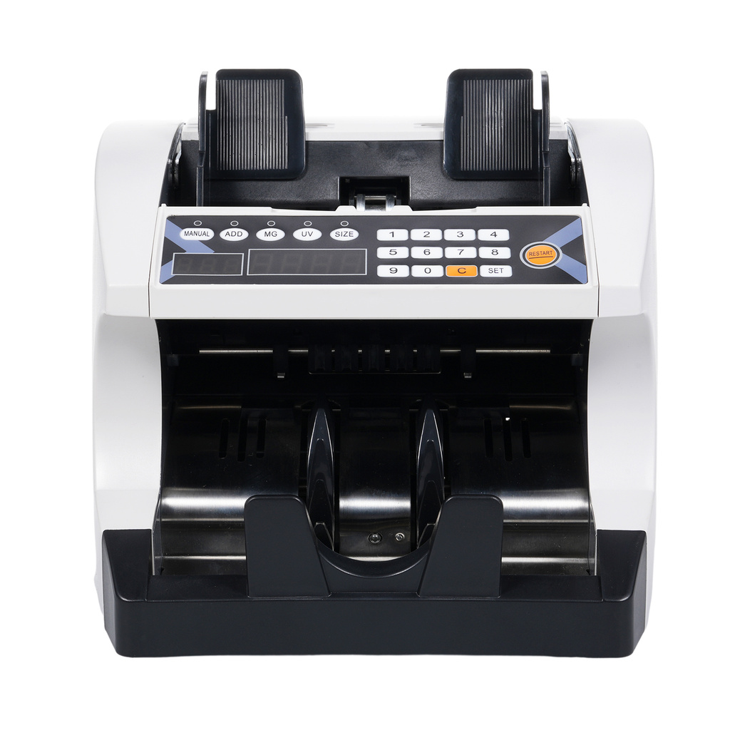 Multi-Currency Automatic Cash Banknote Money Bill Counter Counting Machine with UV MG Counterfeit Detector External Display for EURO/USD/GBP/AUD/JPY/KRW