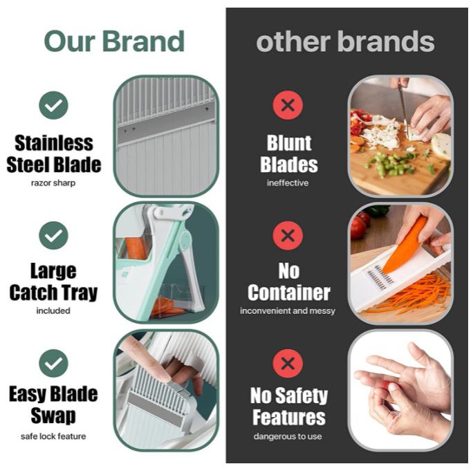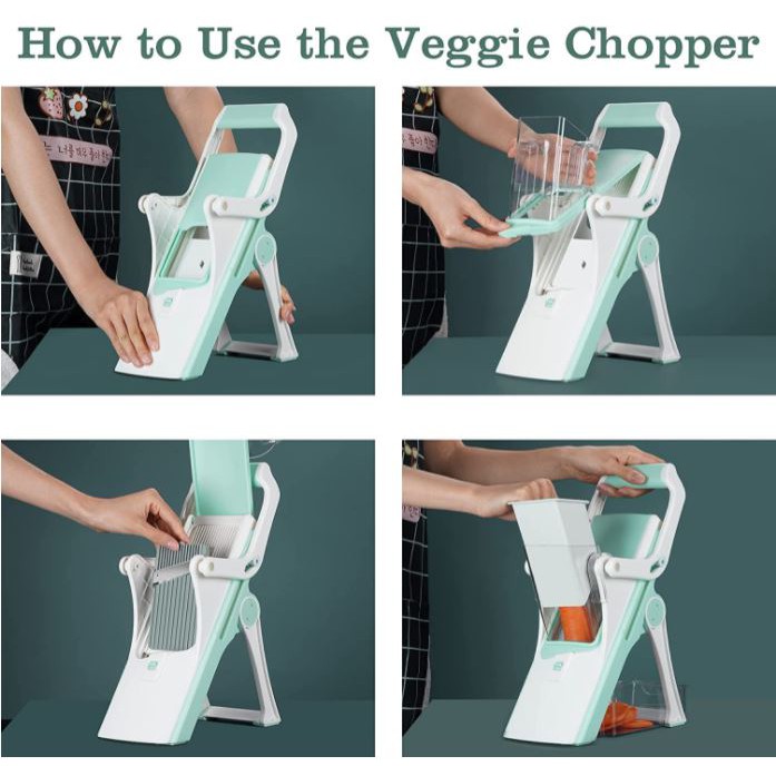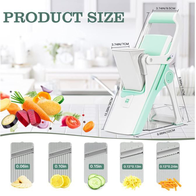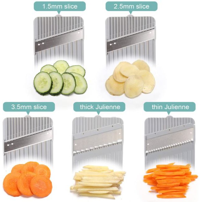 Multi-Function Vegetable Cutter & Julienne, Safe Food Slicer for Veggie/Potato/Onion/Tomato/Meat, Adjustable 5 Blades