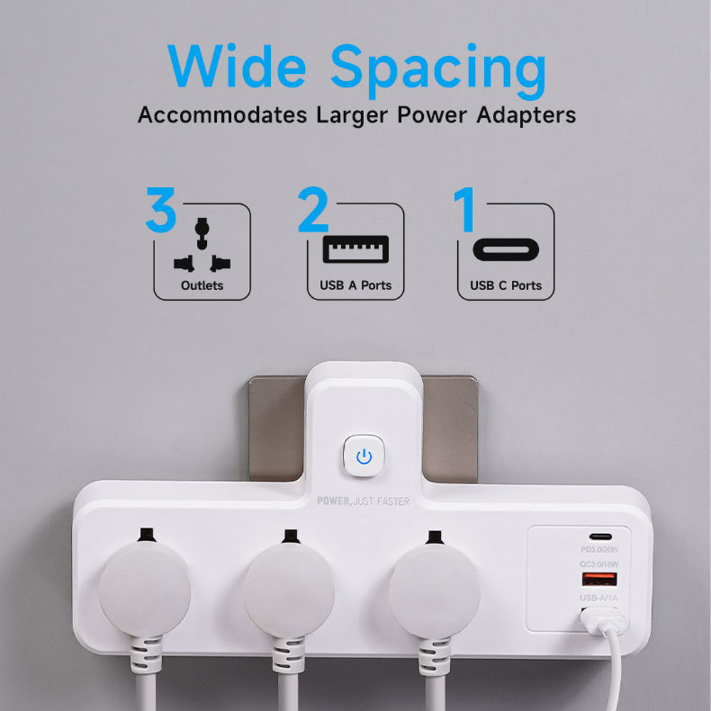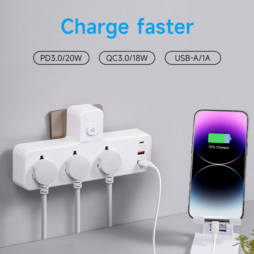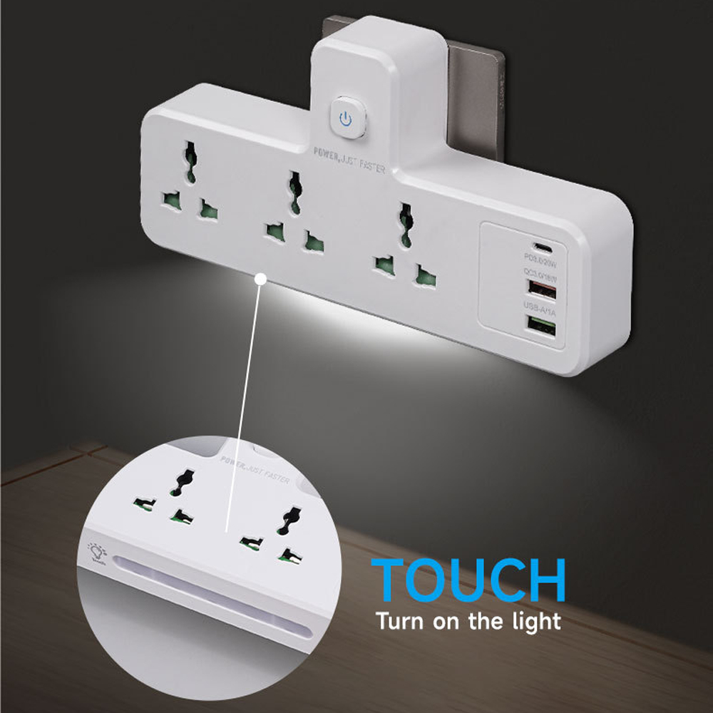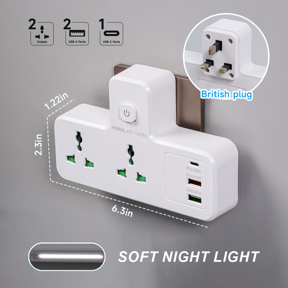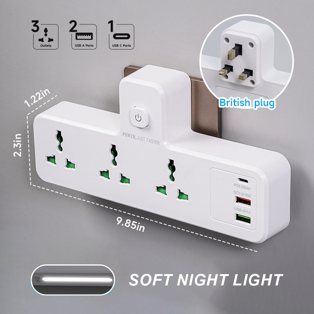 Multi Plug Extension, 4 Way 4 Plugs Socket adapter, 6-in-1 Cube Electrical Extender Outlet Adaptor, PD3.0 20W USB Wall Charger