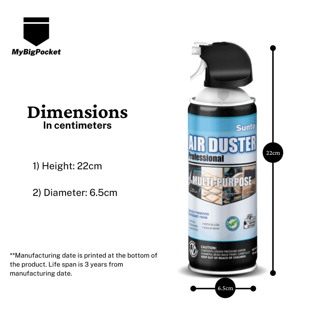 Multi Purpose Air Duster Spray Sunto 400ml - Professional use for cleaning Gaming Laptop, Desktop Fans, DSLR Cameras Len