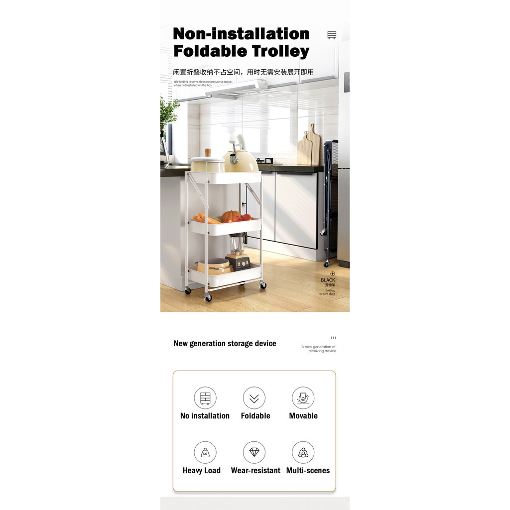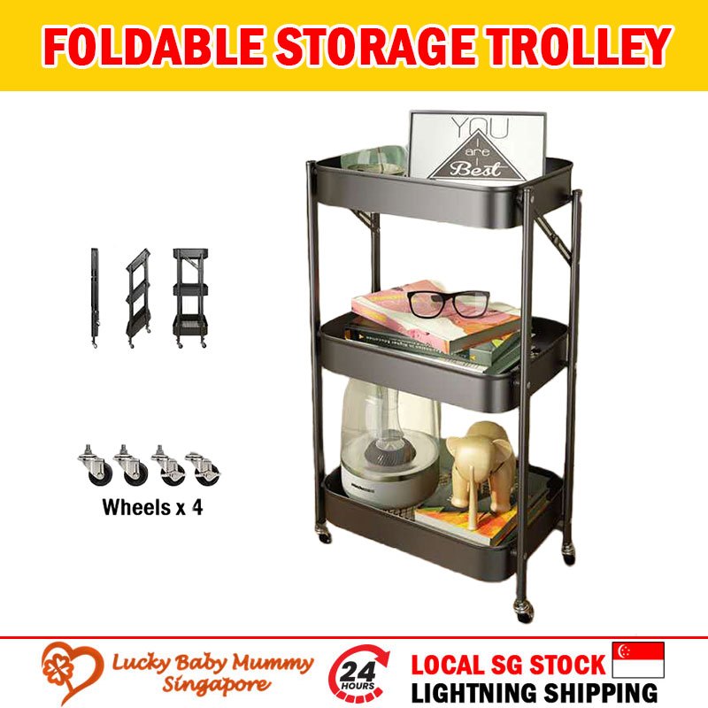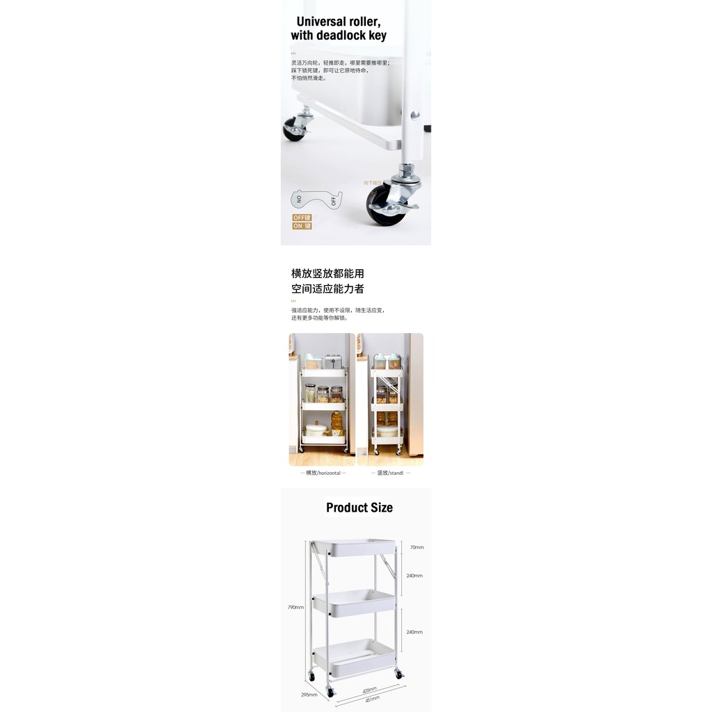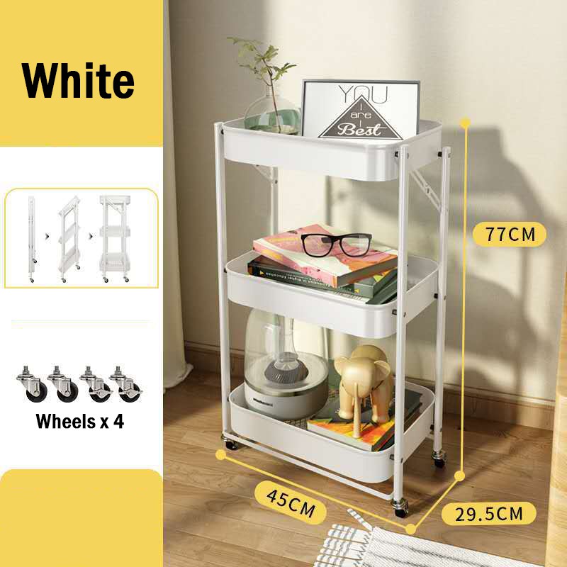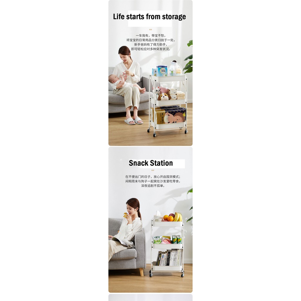 【CLEARANCE】Multi-Purpose Movable Trolley with Handle Bar kitchen Storage Rack Baby Diaper Storage