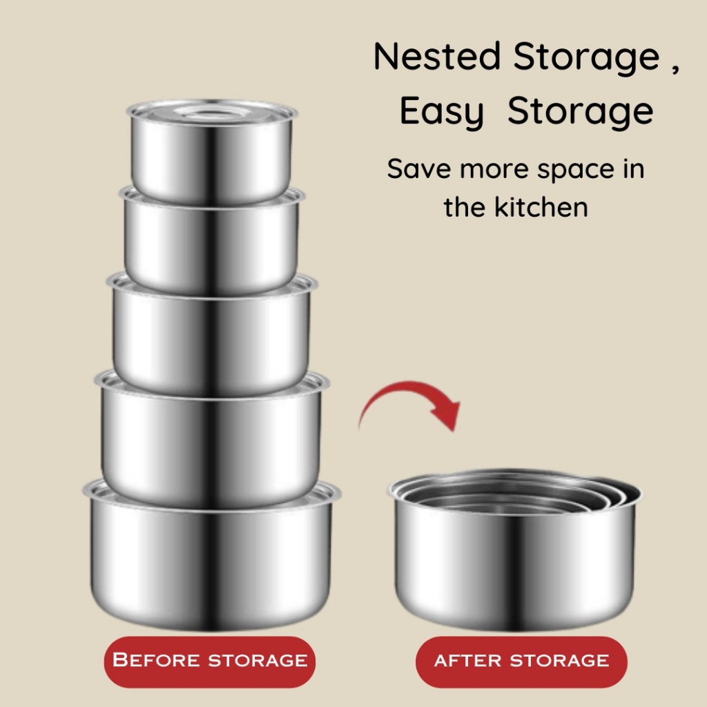 Multi-Purpose Stainless Steel Pot 5 in 1 Set with Lid Cover Kitchen Food Storage Container Kitchenware Cookware Steamer