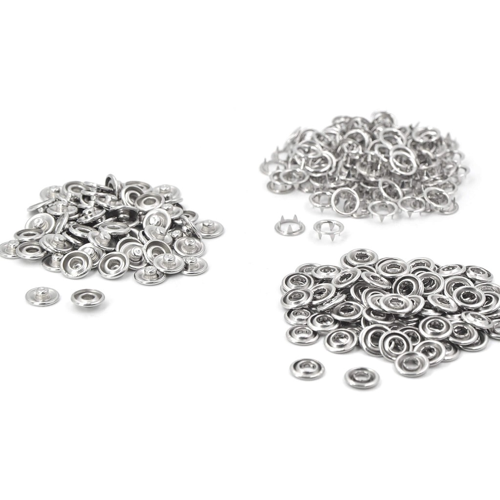 Multi-Size Silver Color Prong Ring Snap Fasteners Press Studs Snap Buttons Poppers 9.5mm, 11mm