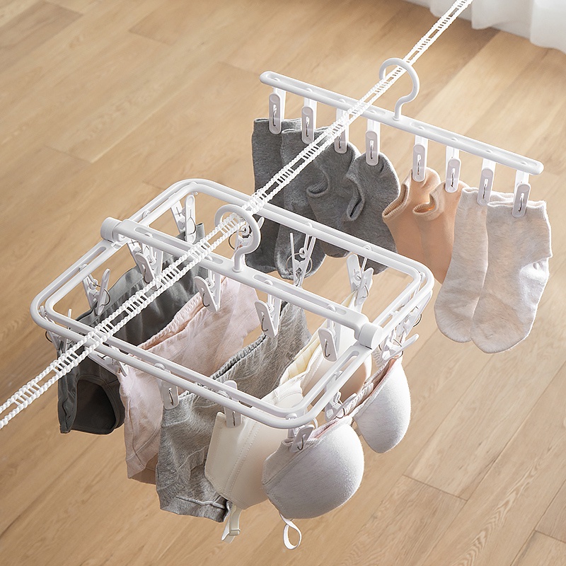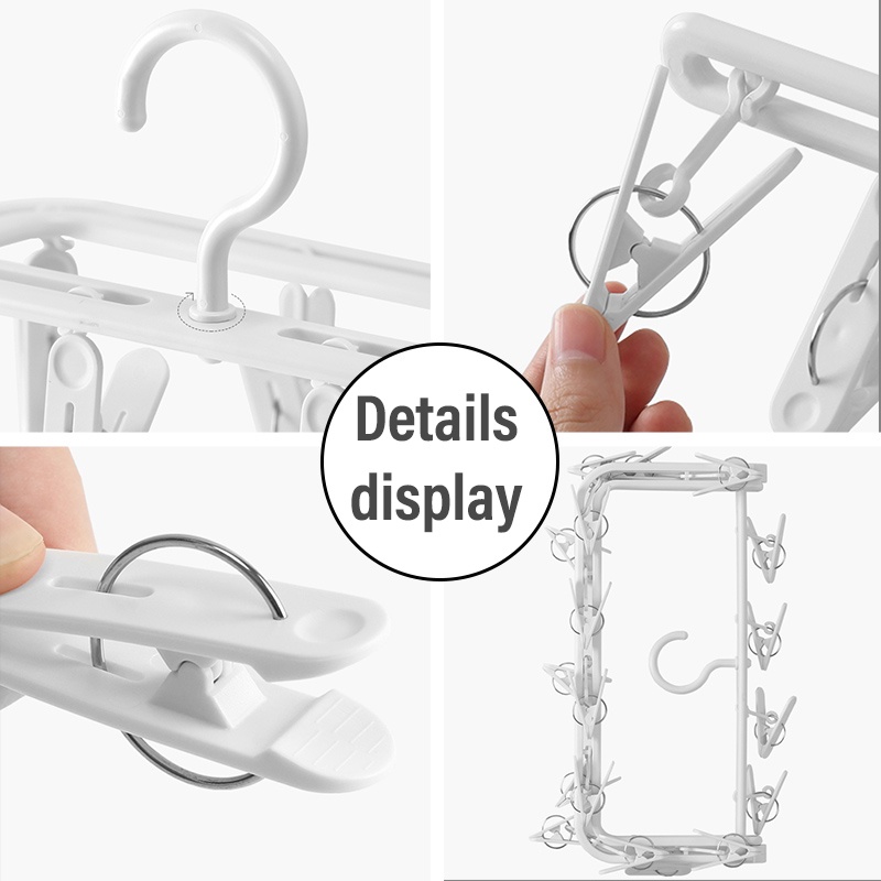 Multi-clip Foldable Drying Rack Plastic Underwear Drying Hanger ABS Windproof Multi-purpose Clothes Hanger Pegs