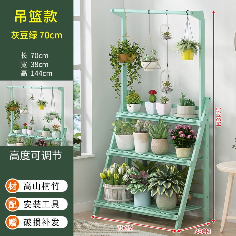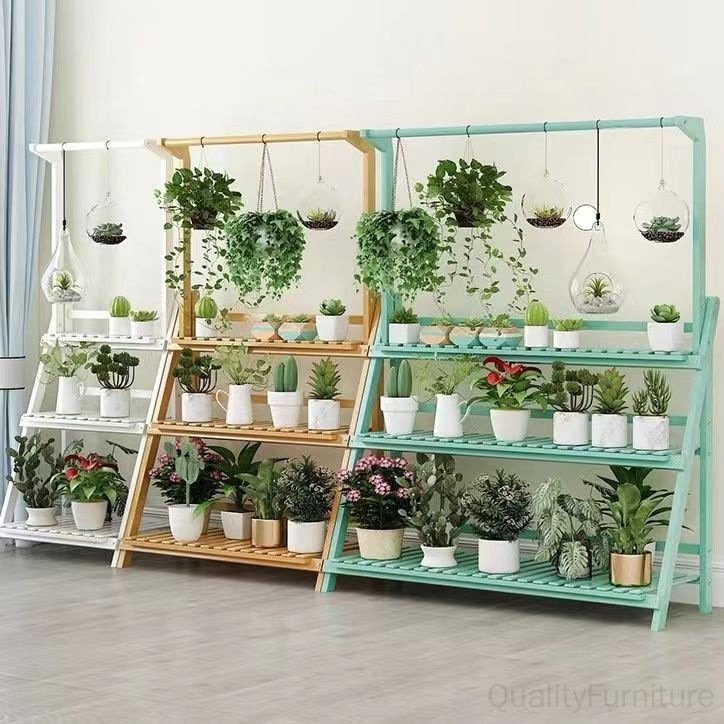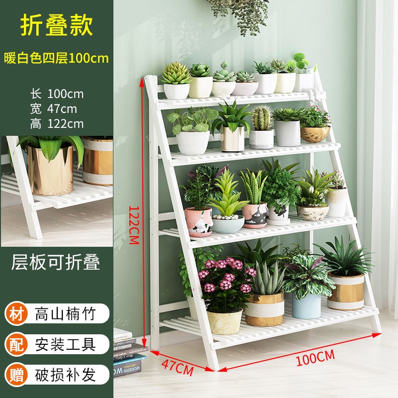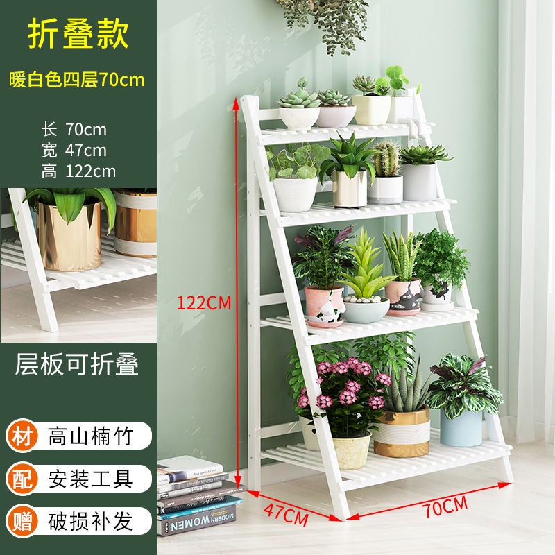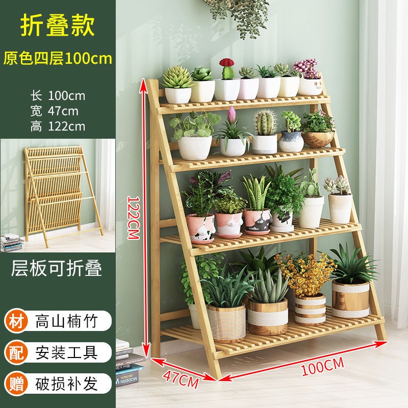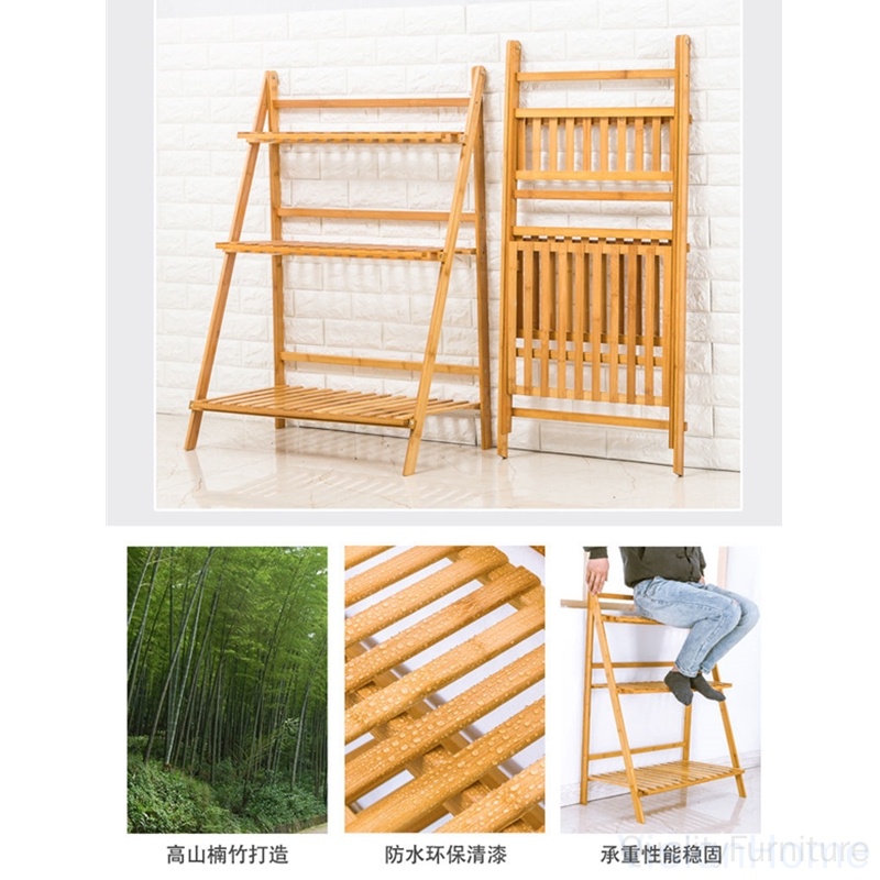 Multi-layer Folding Bamboo Plant Stand Flower Pots Rack Green Plants Flower Balcony Foldable Shelf