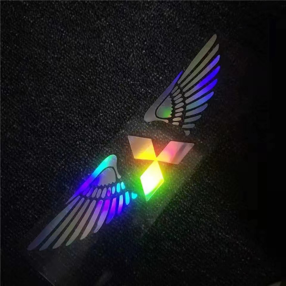 Multicolored Laser Angel Wing Reflective Car Stickers 25CM 50CM Car Body Logo Sticker Car Door Decoration Decals