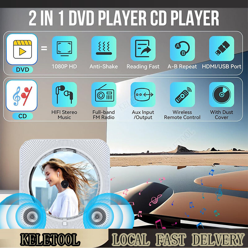 Multifunction DVD Player for Home CD Player with Bluetooth 5.1 Dual Speakers DVD Player for TV with Remote Control RCA HDMI Cable HD 1080p with AV Dust Cover