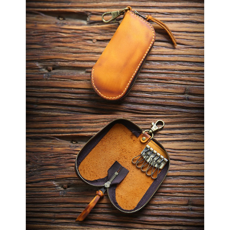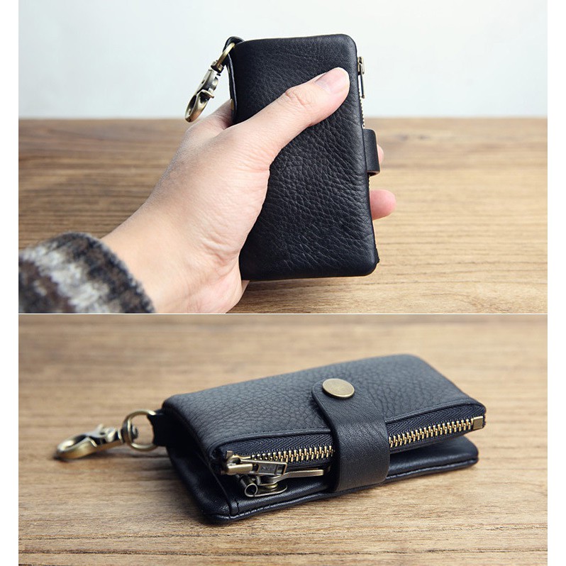 Multifunctional Men Key Holder Genuine Leather Car Key Case Zip Coin Wallet