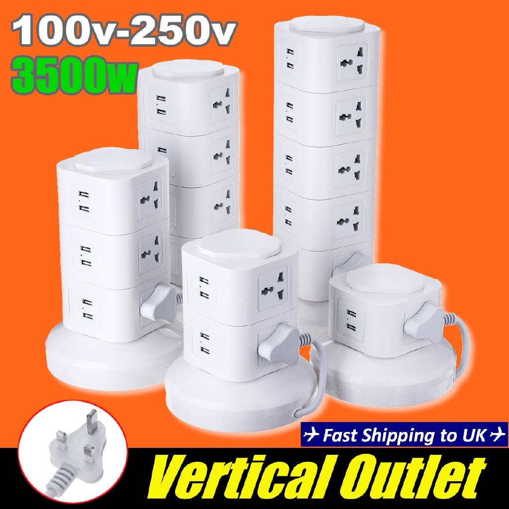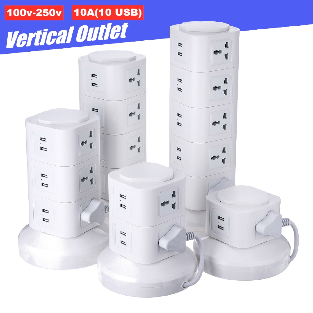 Multiple Tower Power Strip Vertical Universal Surge Protector Electrical Socket with USB Switch 3m Extension Cord 1-5 layers