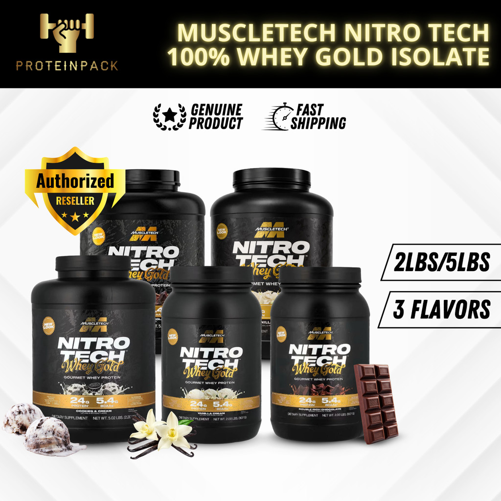 MuscleTech Nitro Tech 100% Whey Gold Isolate 5lbs Double Choco, French Vanilla, Cookies & Cream, Strawberry Shortcake