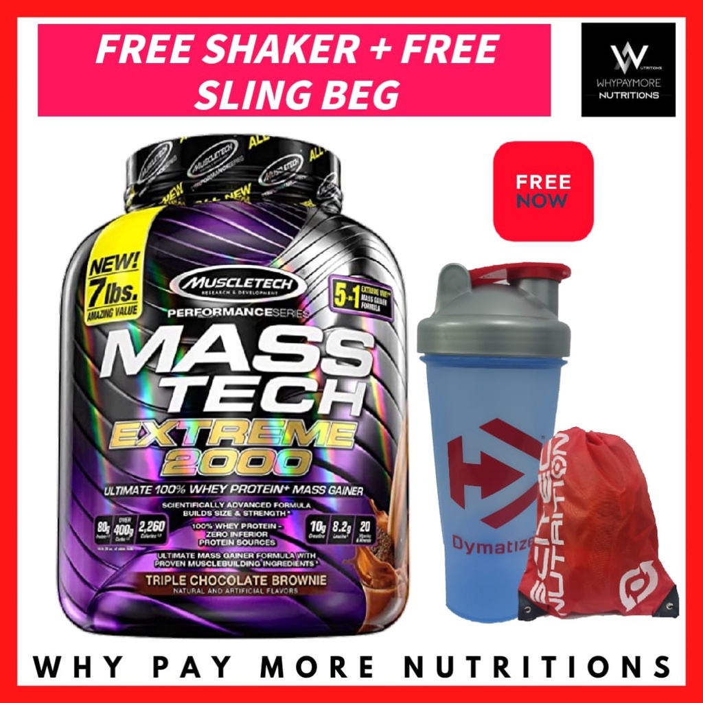 Muscletech Masstech Extreme 2000 7lbs (Free Shaker + Sling Beg) Masstech, Mass Gainer, Weight Gainer, Sizing, Susu Gym