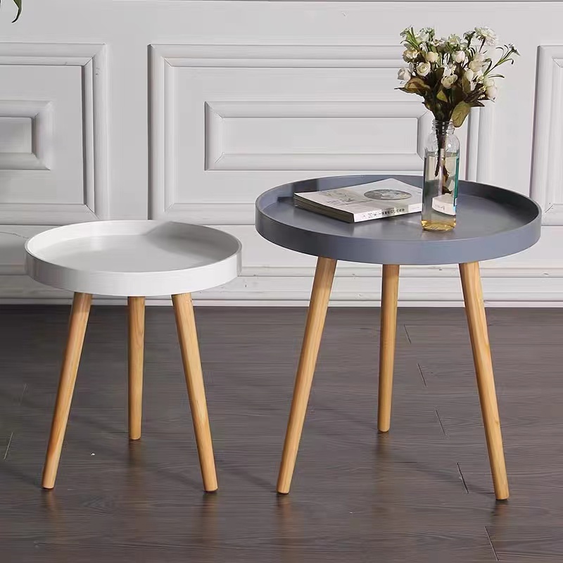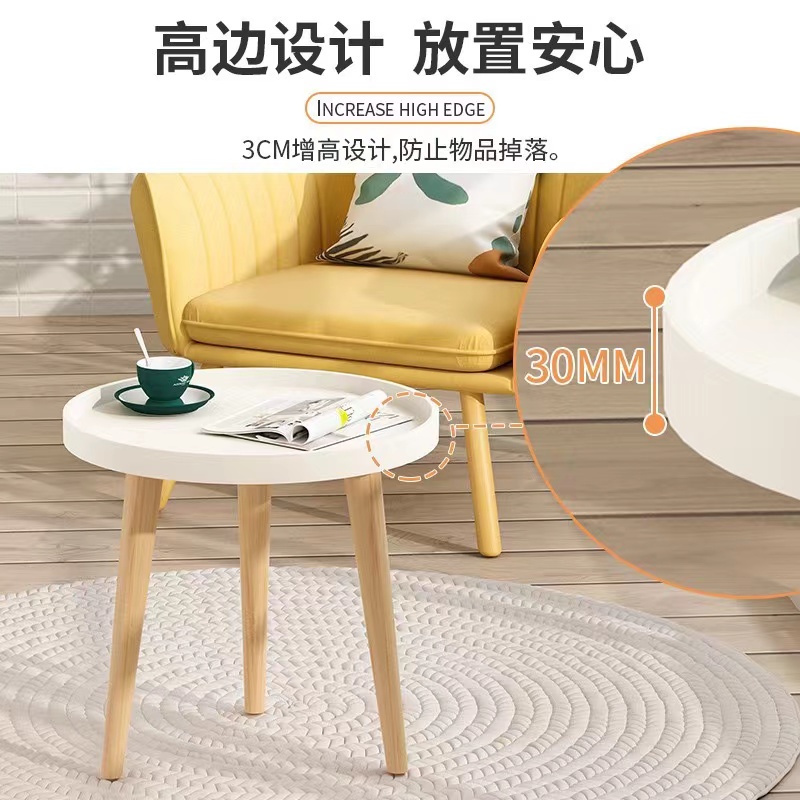 MyCorner SG Stock | Small Round Table Simple Mini Coffee Table Wooden Sofa Bed Side Table