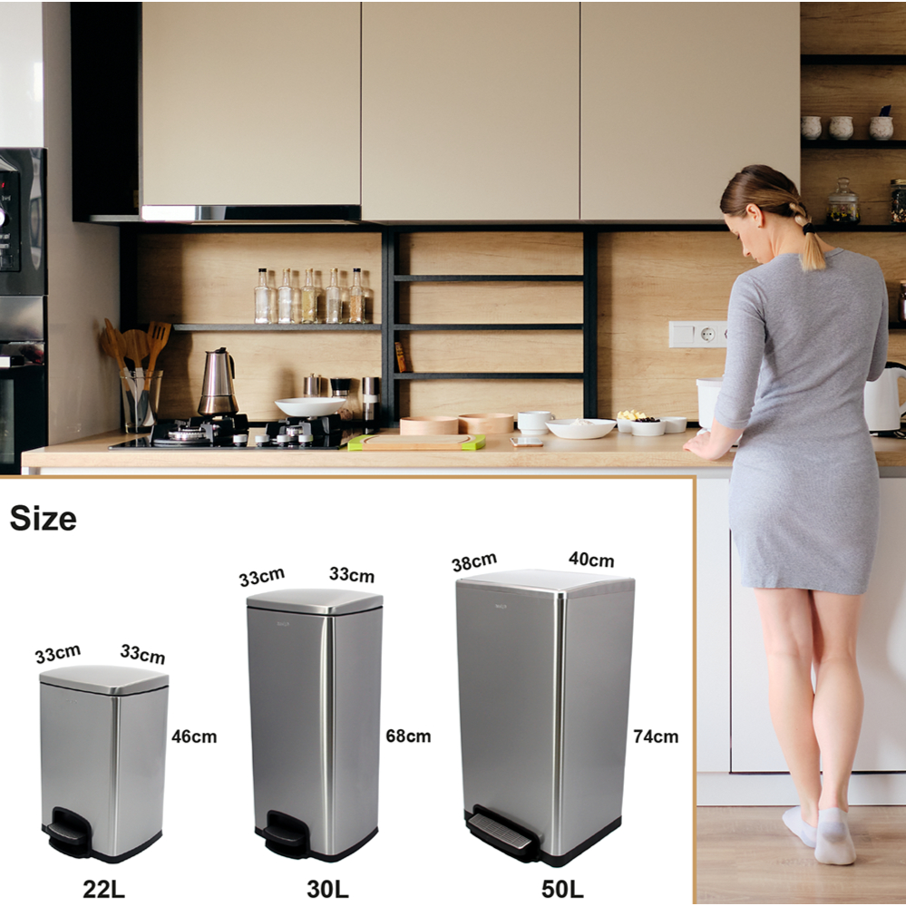 N2101 Dustbin | Multiple Sizes | Pedal Dustbin | Soft Closing | Trash Bin | Kitchen Dustbin