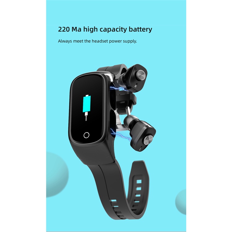 N8 Smart Bracelet Bluetooth TWS Earphones 2-in-1 Bluetooth Communication Multiple Exercise Modes Heart Rate Blood Pressure