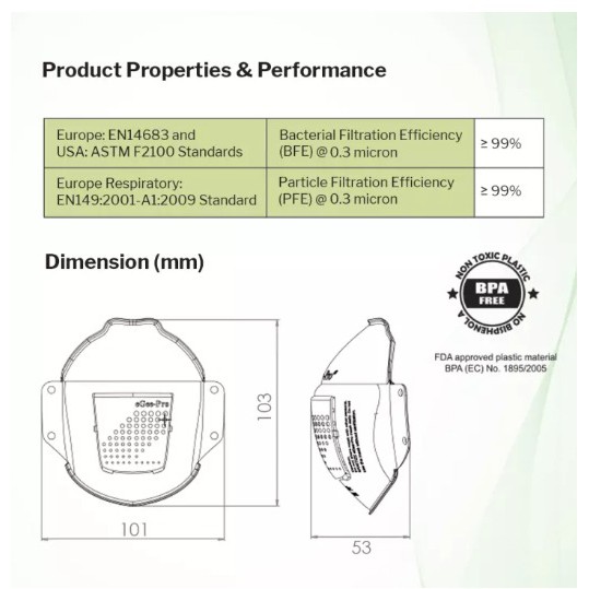 N95-Grade- eGeePro REUSABLE Medical-Grade Face MASK + 50 Pcs Refill Filters