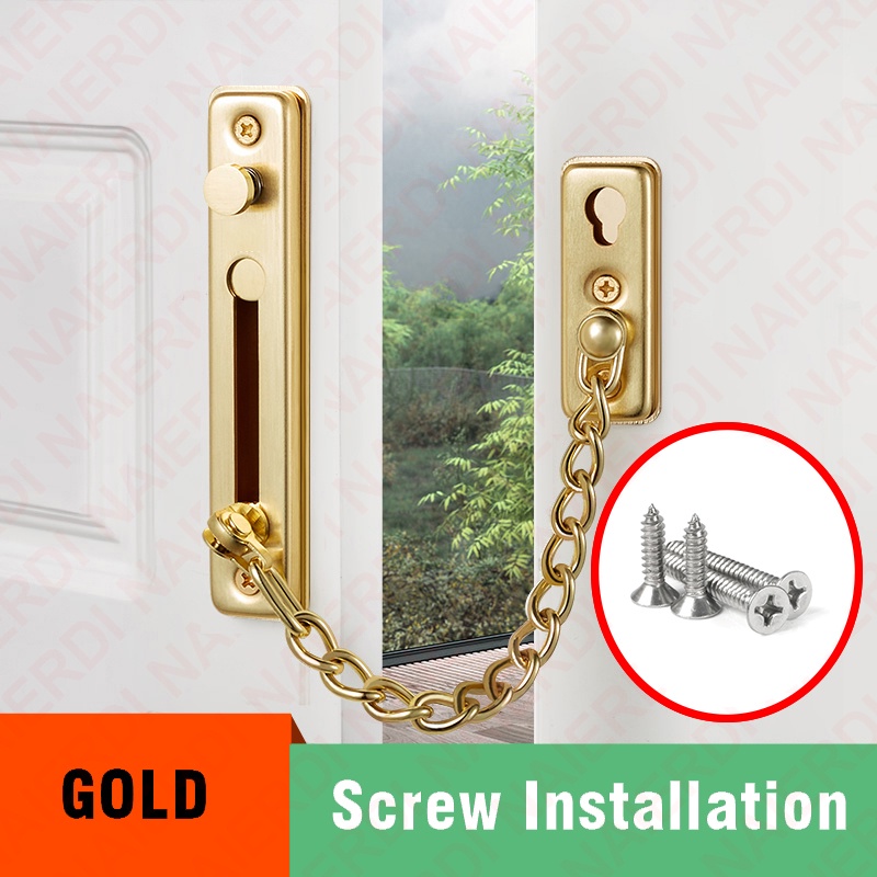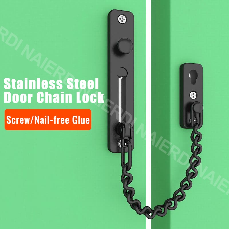 NAIERDI Door Chain Lock 304 Stainless Steel Security Anti-theft Door Chain Latch Buckle Guard with Nail Free Glue Door Hardware