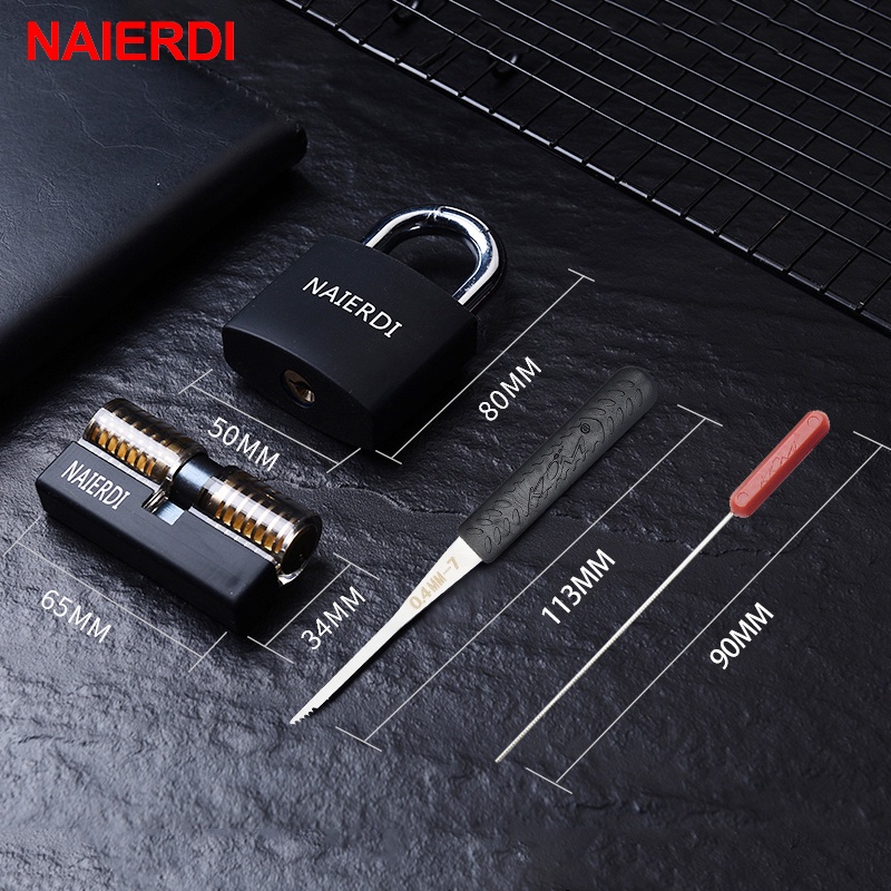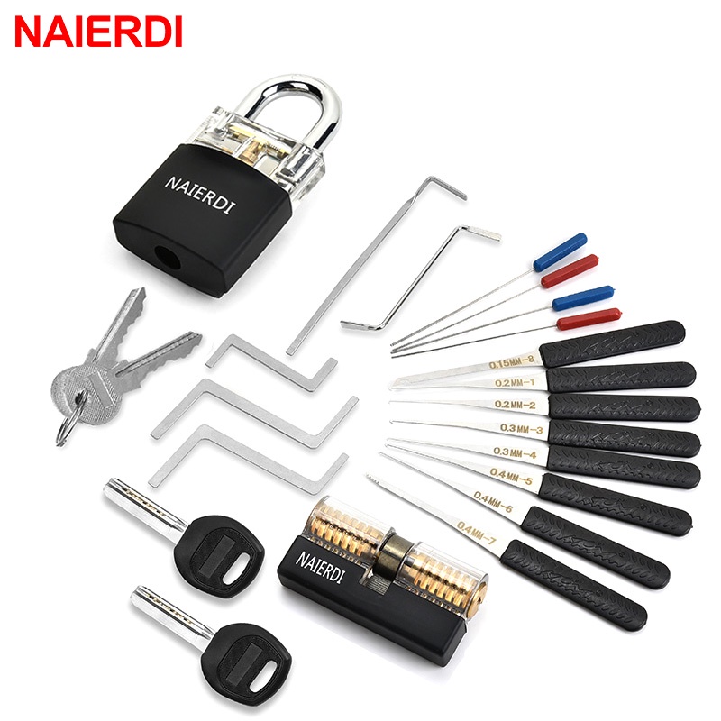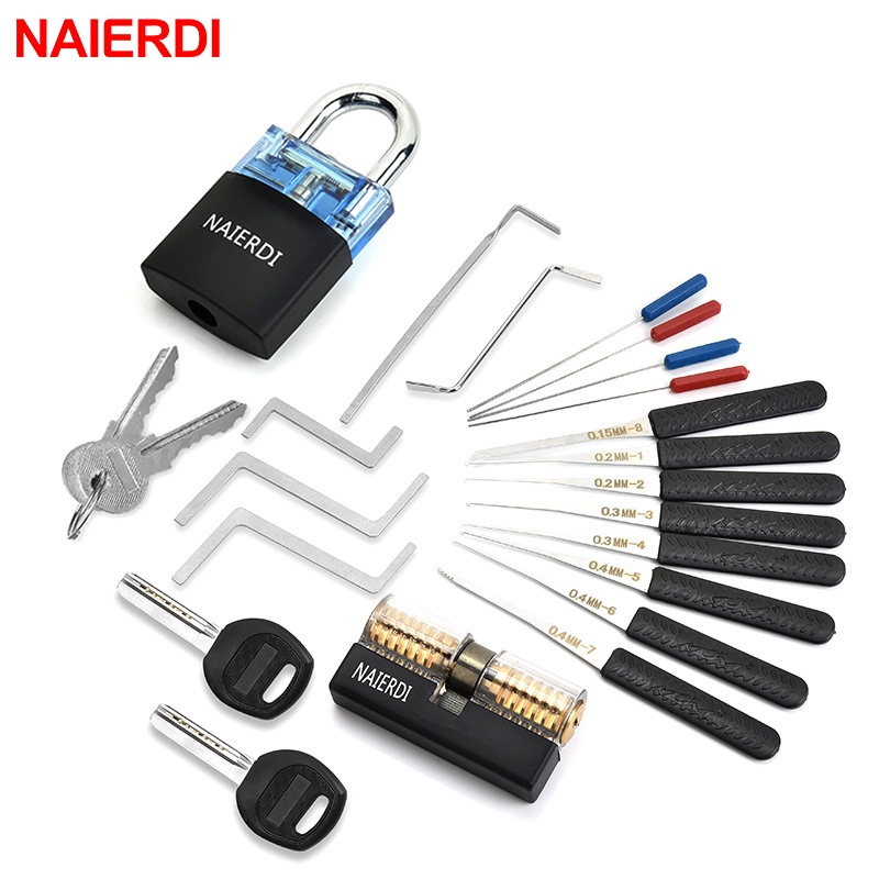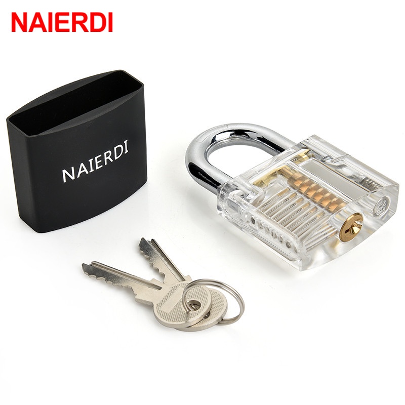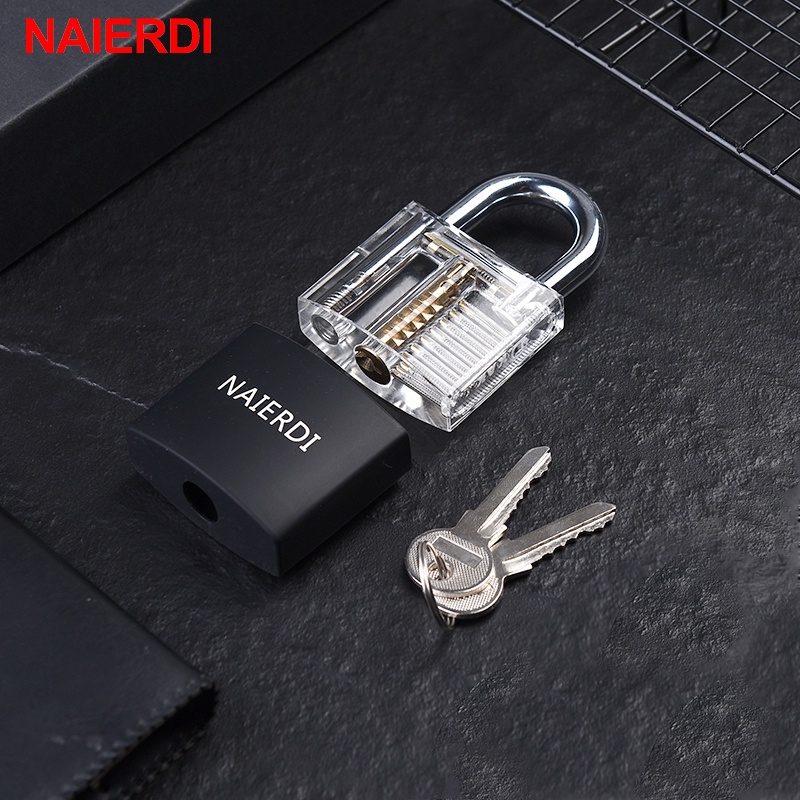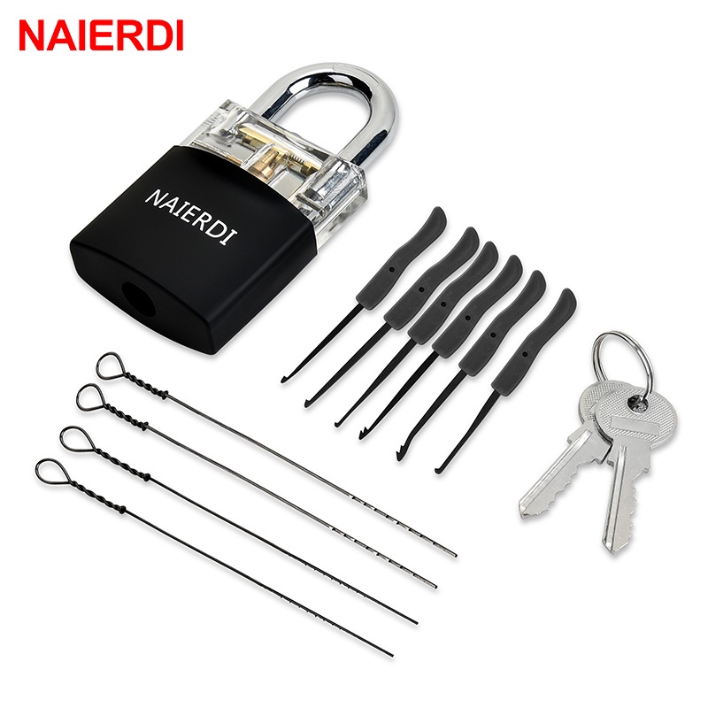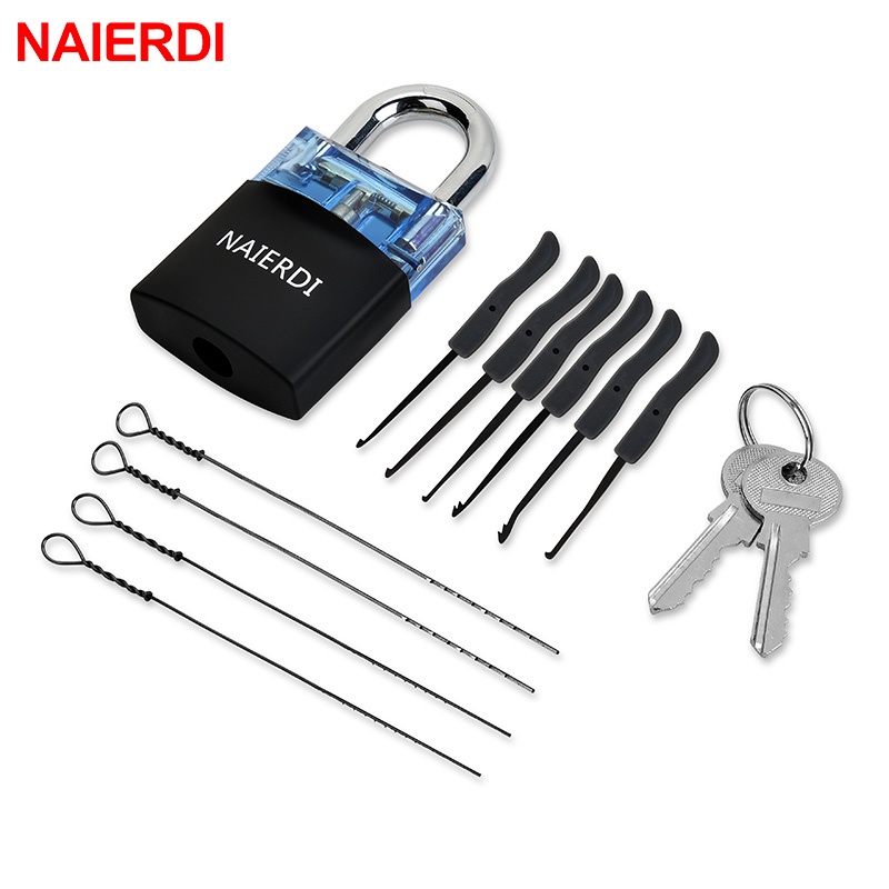 NAIERDI Locksmith Hand Tools Supplies Lock Pick Set Transparent Visible Practice Padlock With Broken Key Removing Hooks Hardware