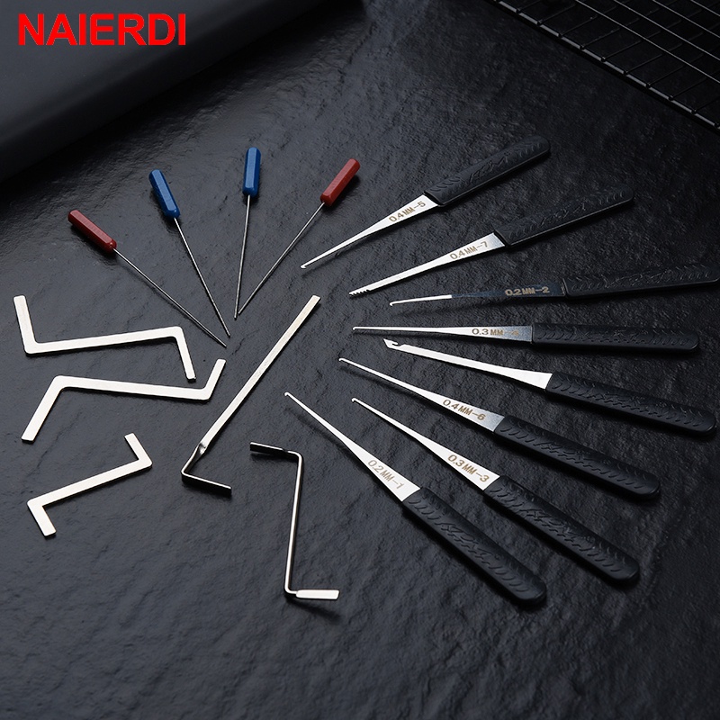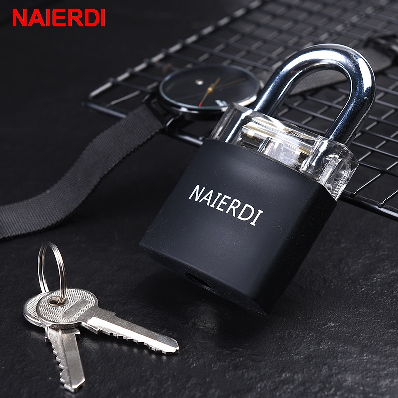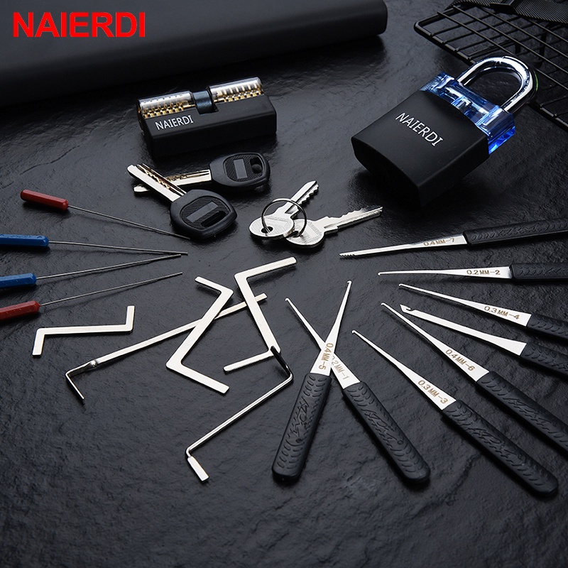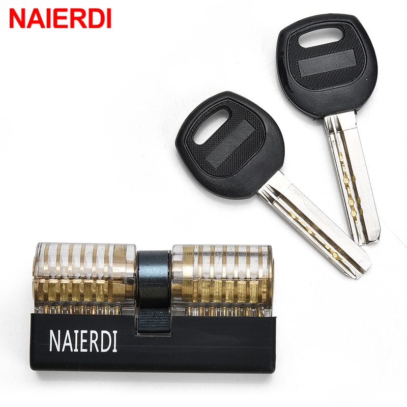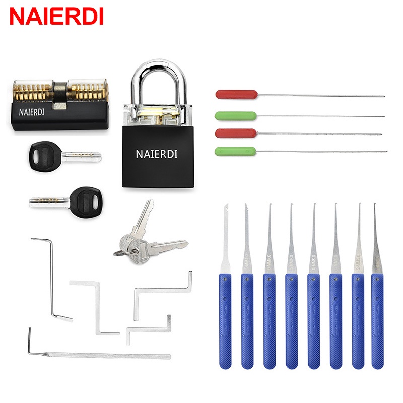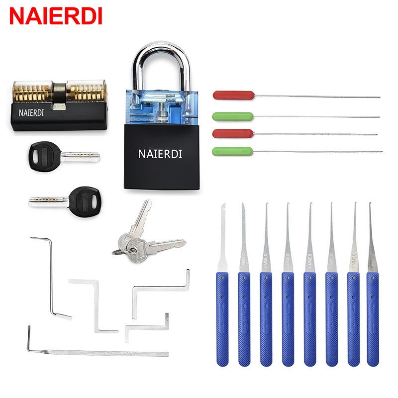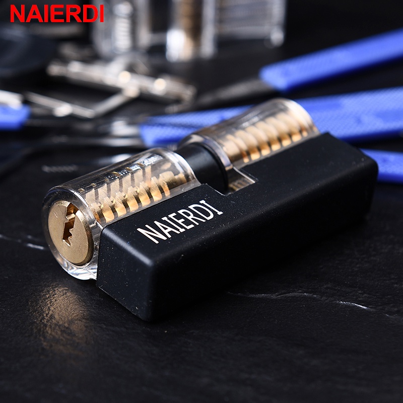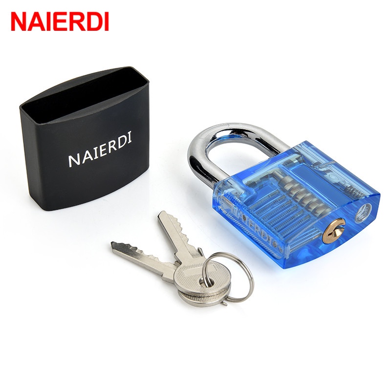 NAIERDI Locksmith Hand Tools Supplies Lock Pick Set Transparent Visible Practice Padlock With Broken Key Removing Hooks Hardware