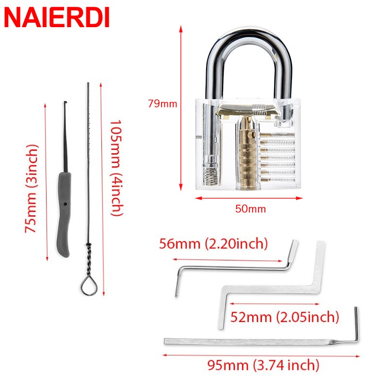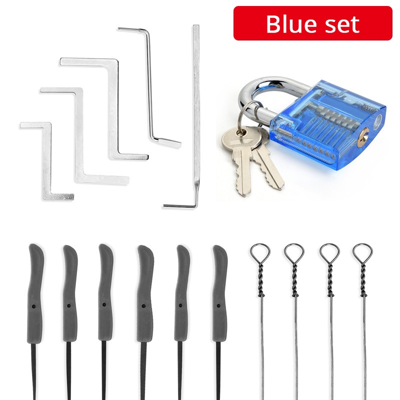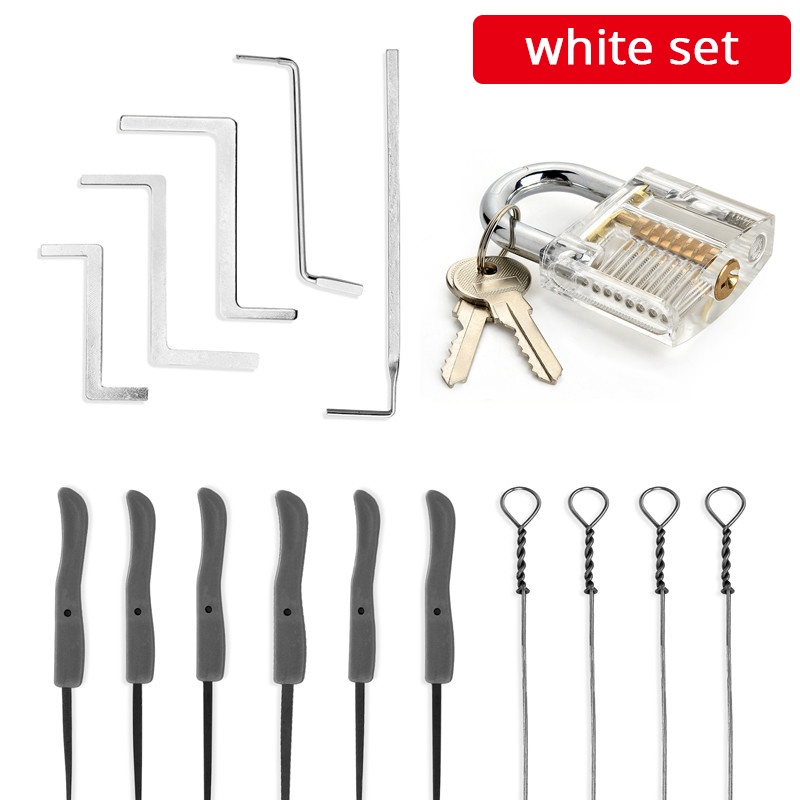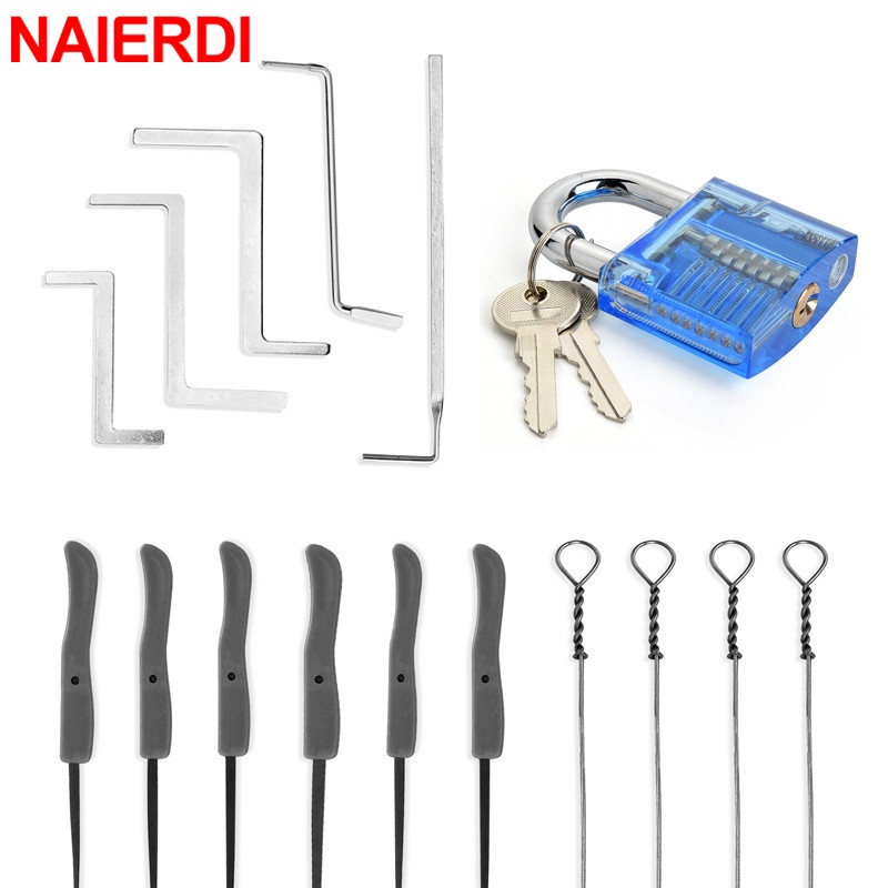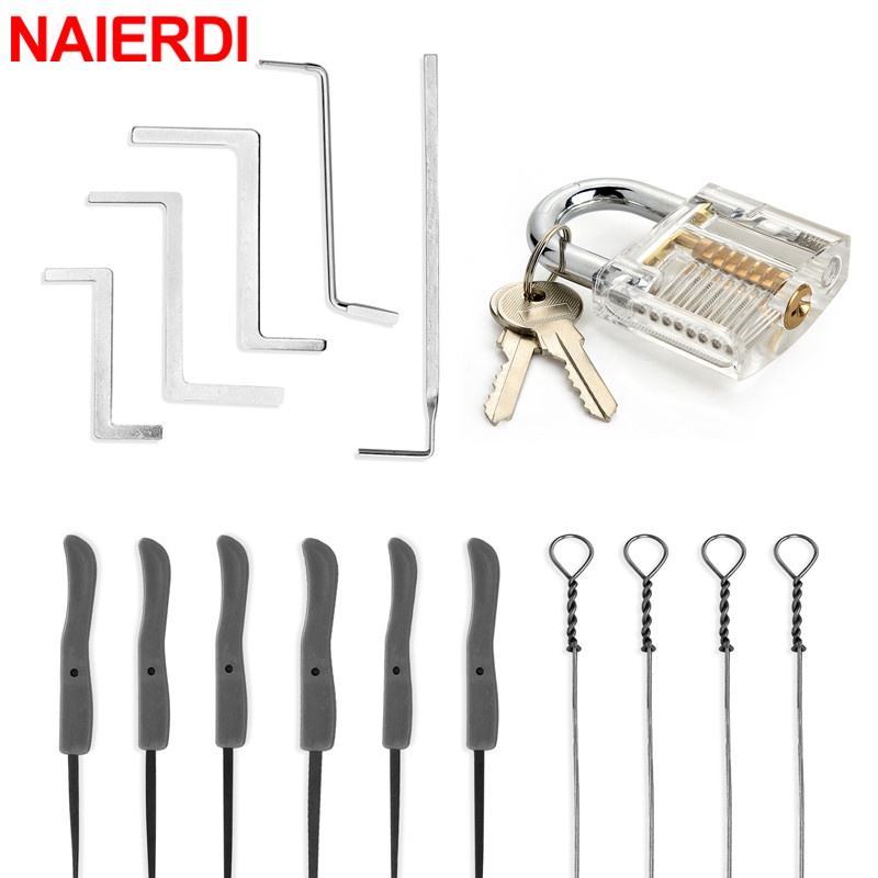 NAIERDI Locksmith Tools Practice Transparent Lock Kit 3 In 1 Set With Broken Key Extractor Wrench Tool Removing Hooks Hardware
