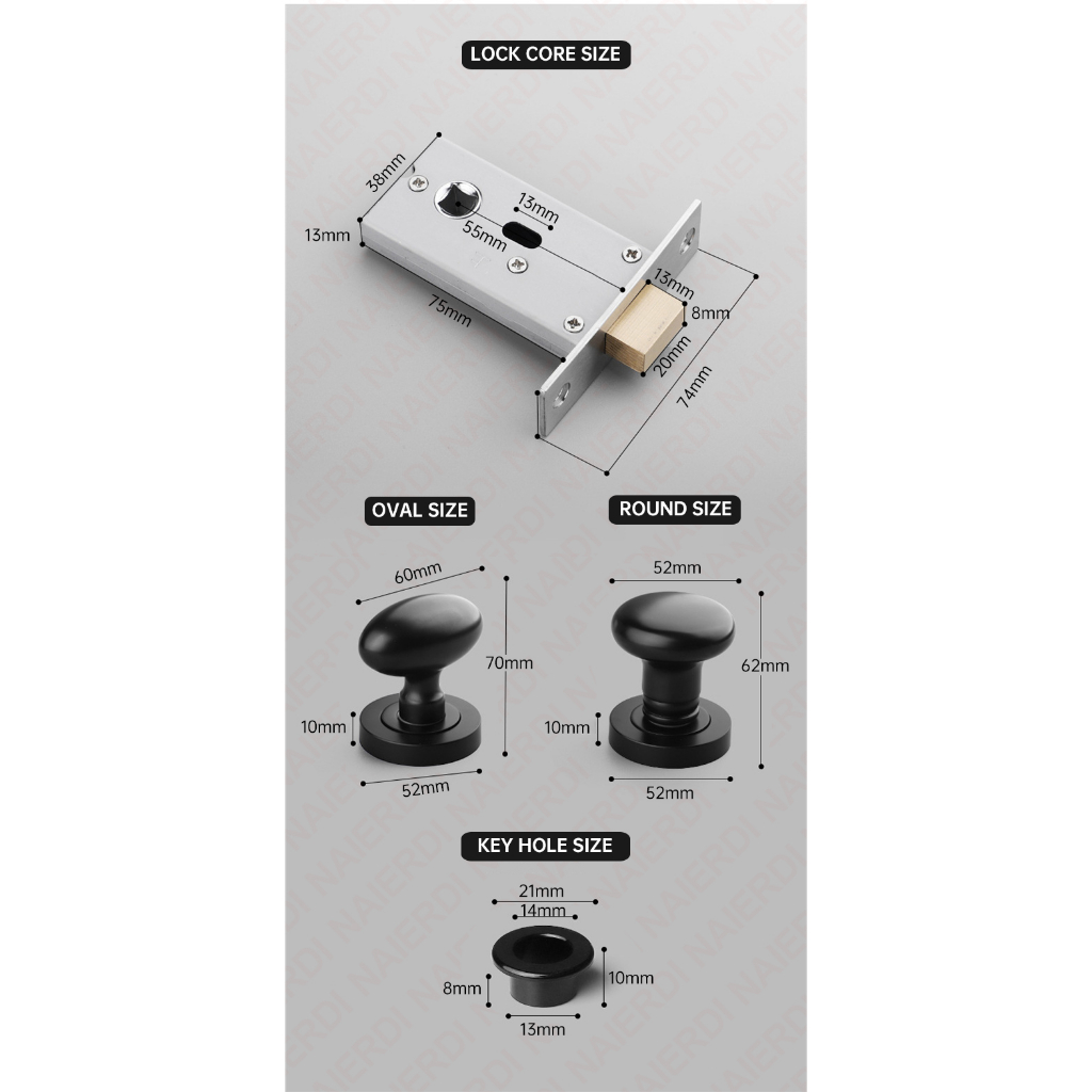 NAIERDI Privacy Door Lever Set Black Zinc Alloy Hidden Door Lock Invisible Sliding Door Handle Lock Keyless Mechanical Door Lock