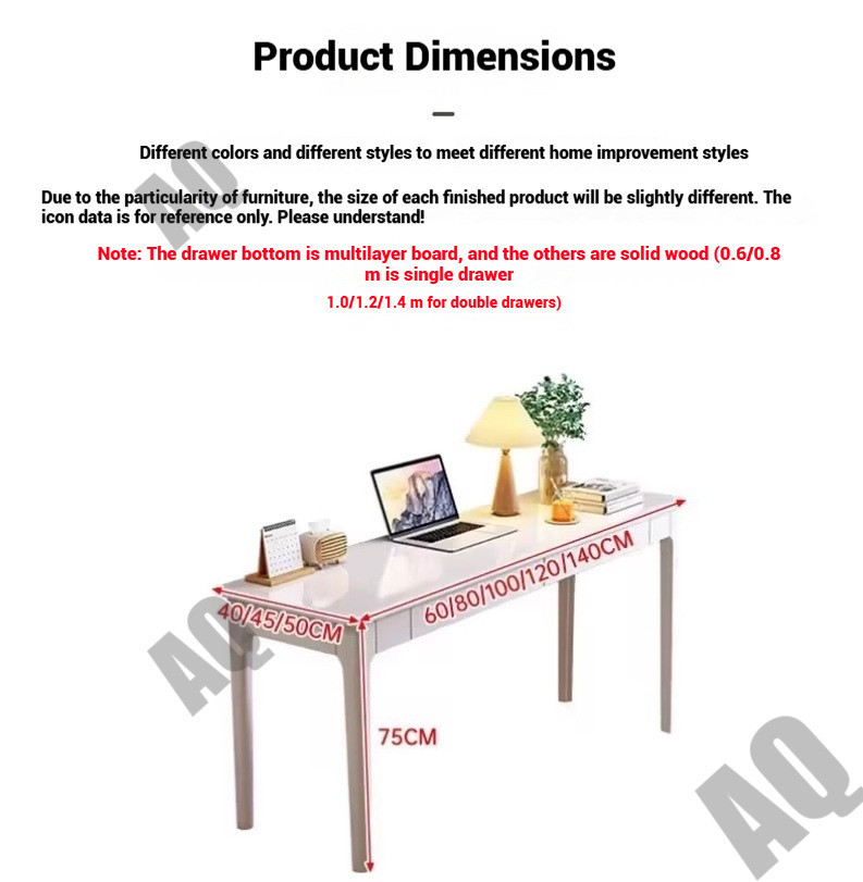 NAQ Study Table All Solid Wood Narrow Desk 40/45cm Wide Office Desk Home Computer Table Bedroom Small Home Study Writing Table