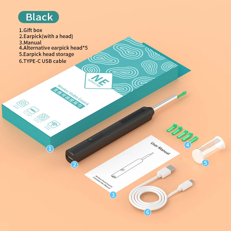 NE22 Smart Visual Wireless Ear Pick Otoscope Ear Wax Removal Tool with Camera LED Light Wireless Otoscope Smart Ear Cleaning Kit NE3