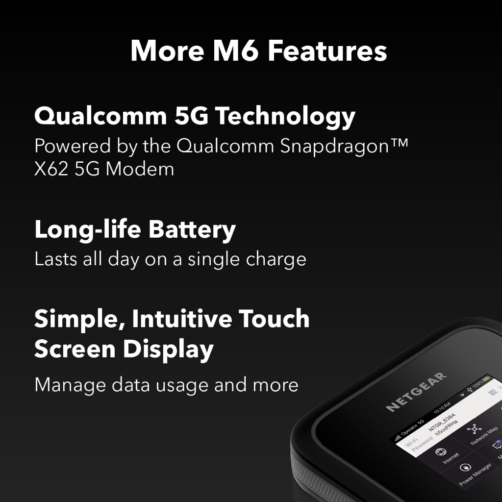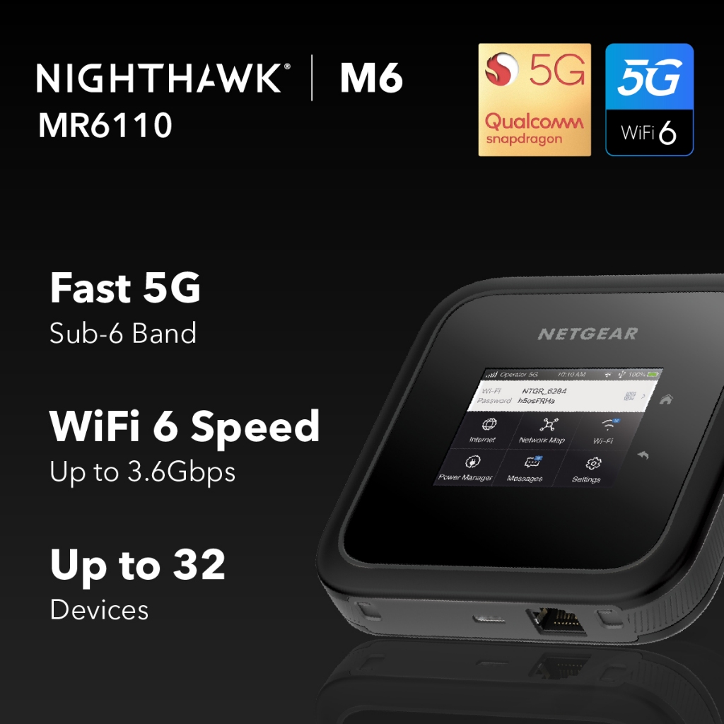 NETGEAR Nighthawk (MR6110) M6 5G WiFi 6 Mobile Hotspot Router : Portable WiFi, Up to 32 devices, AXE3600 3.6Gbps