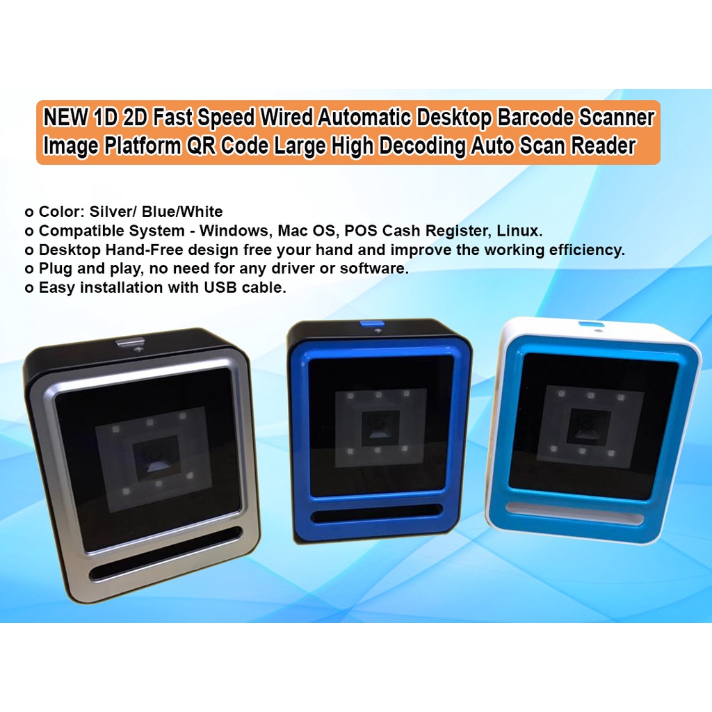 NEW 1D 2D Fast Speed Wired Automatic Desktop Barcode Scanner Image Platform QR Code Large High Decoding Auto Scan Reader