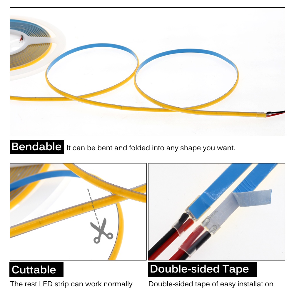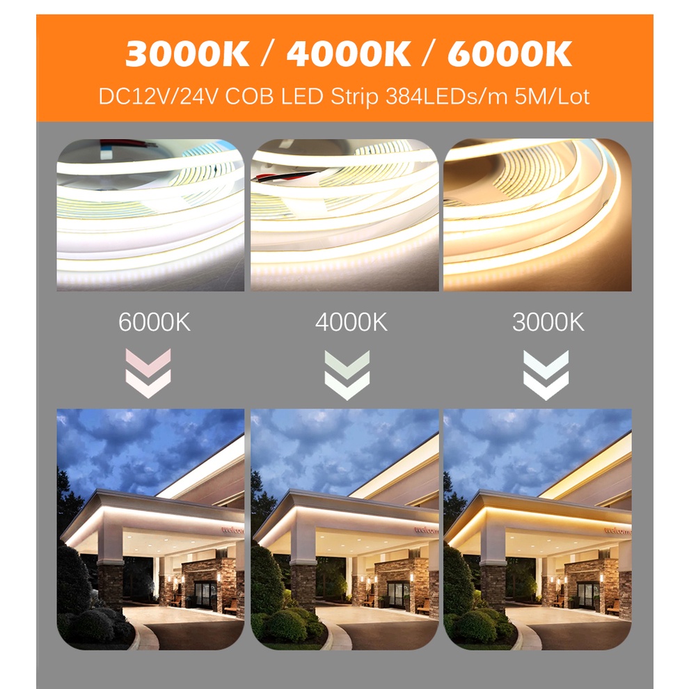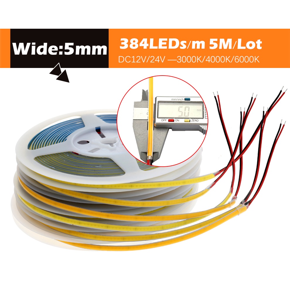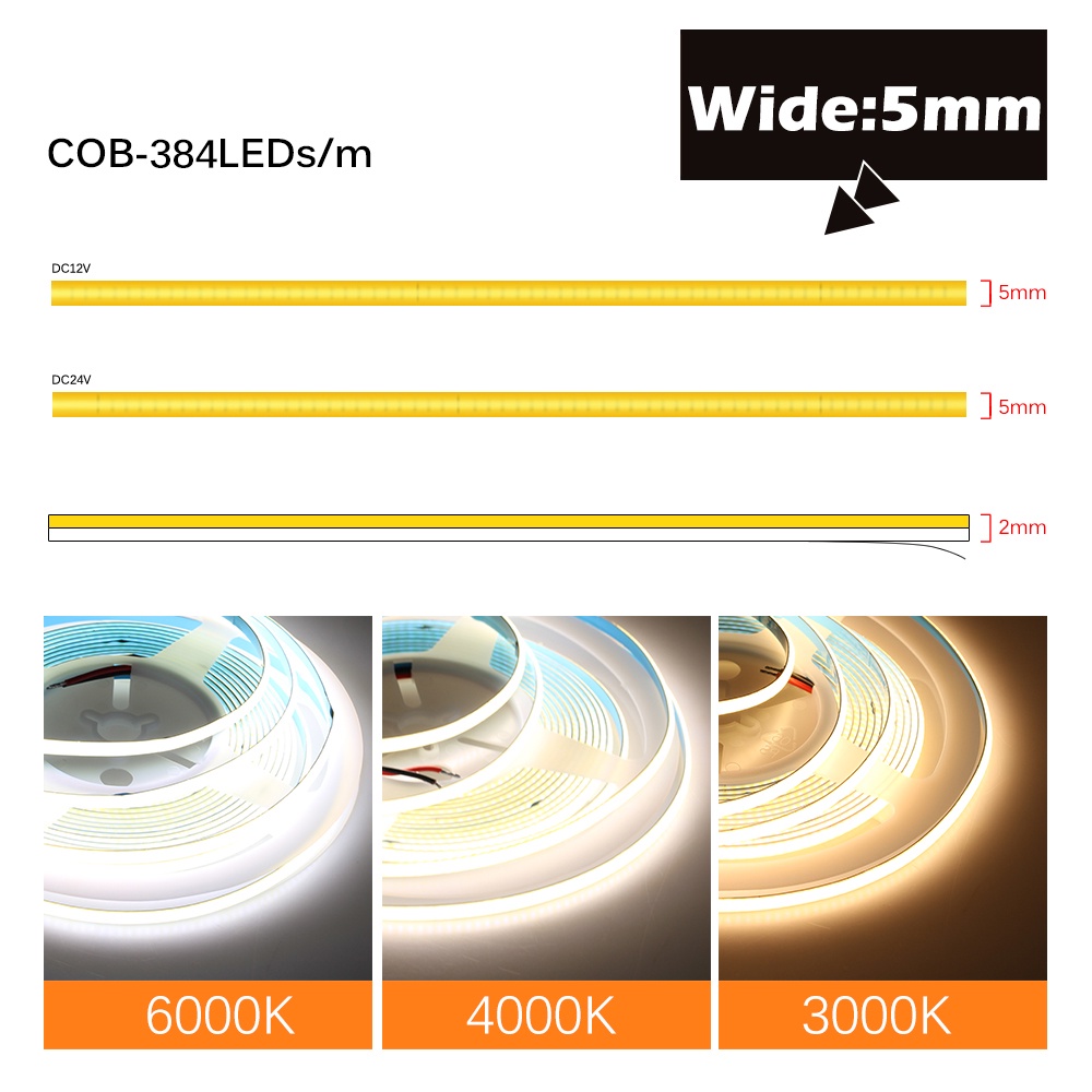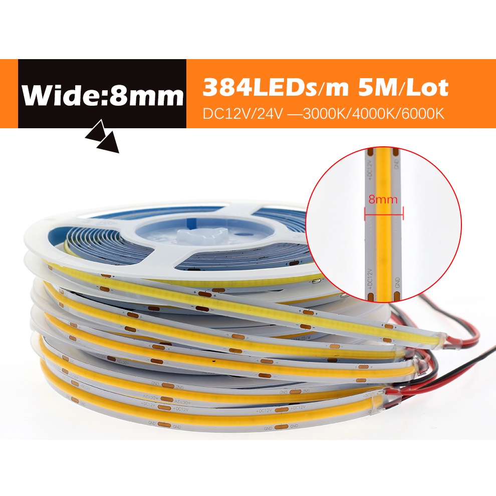 NEW Upgrade 5M COB LED Strip DC12V/24V 384led/m 5mm 8mm Wide Flexible Light Strip White Light/warm Light Cob Light Decor Lights
