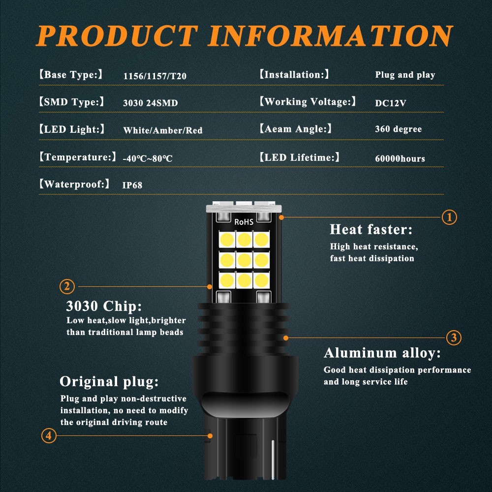 NEW1pcs T20 1157 reverse light brake light 1156 ba15s LED signal super bright W21W P21 5W LED Car Signal Light Auto Reverse Light