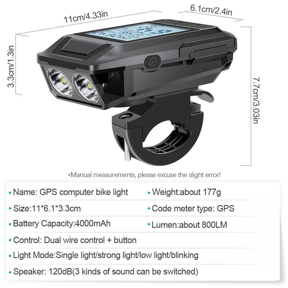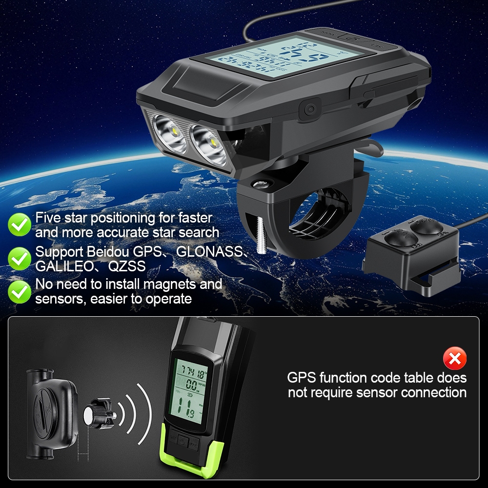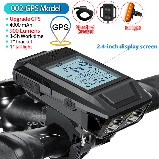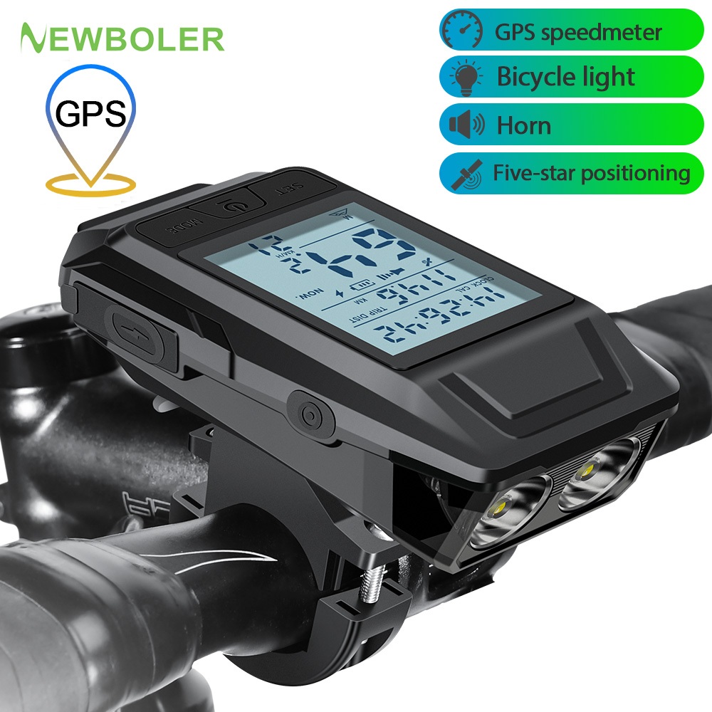 NEWBOLER GPS Bicycle Speedometer Bike Light 4000Mah With Horn Bicycle Odometer Waterproof Bike Headlights