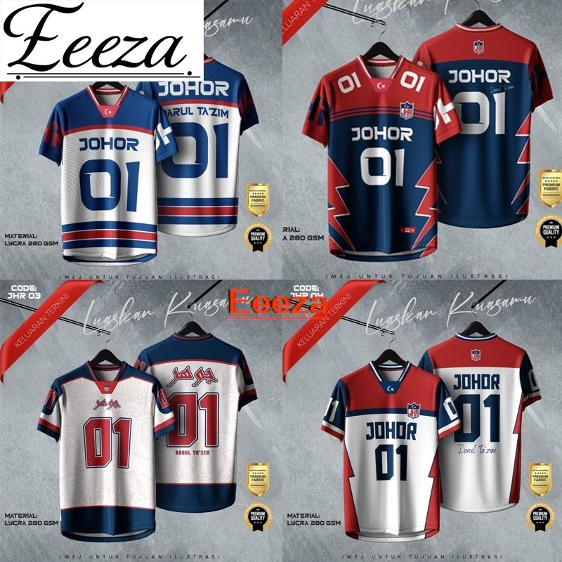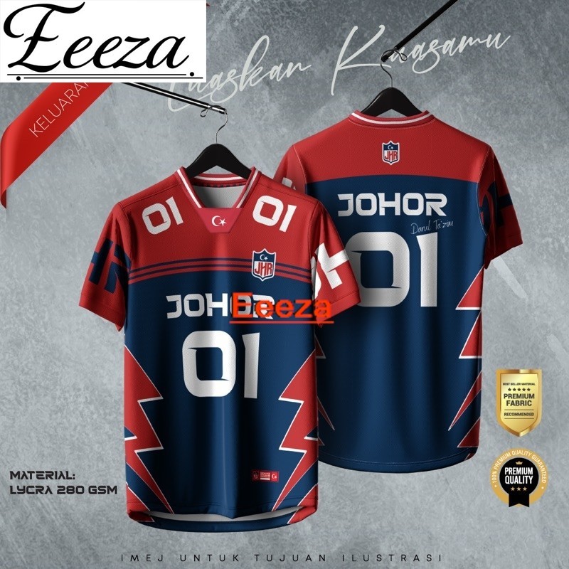NFL Edisi Negeri Johor Jersey Baju Jersey Male Thailand Viral Retro Collar Full Sublimation Microfiber Jersey