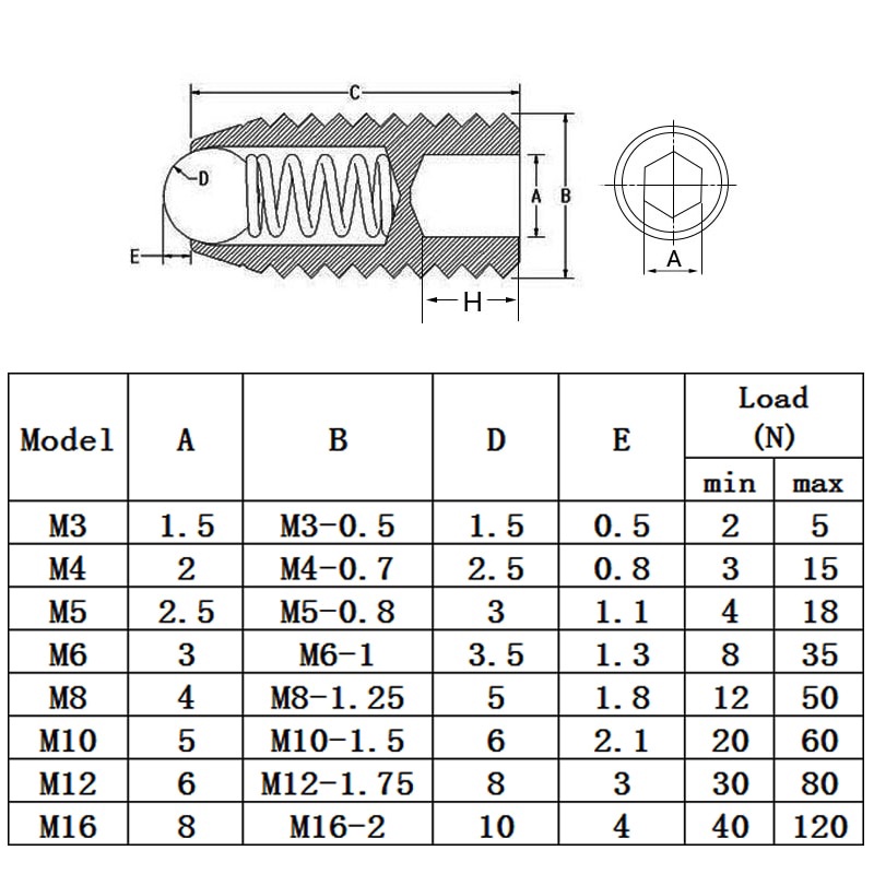 NINDEJIN 30-45pcs 304 Stainless Steel Hex Hexagon Socket Ball Point Set Screw Metric Spring Plunger Screw M3/M4/M5