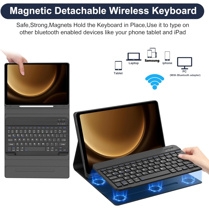 NIXXOS For Samsung Galaxy Tab Case with Keyboard Built-in Pen Slot Leather Case Bluetooth Keyboard For Samsung Galaxy S9FE S9 S8 S7 S6 Lite A9+ A8 A7