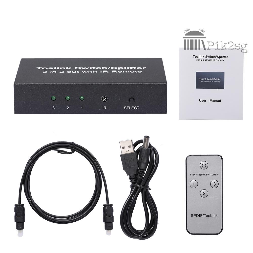 NK-T32 3 In 2 Out Toslink Cable Switch Splitter SPDIF/TOSLINK Optical Audio 3x2 Switcher SPDIF Splitter With IR Remote Control
