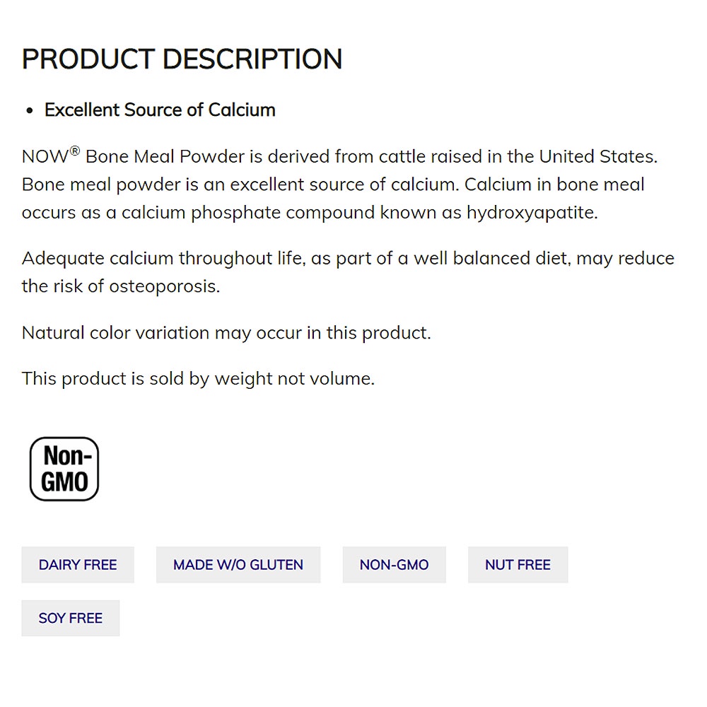 NOW Supplements, Bone Meal Powder with Calcium Carbonate and Magnesium Oxide, Natural Calcium Source, 1-Pound