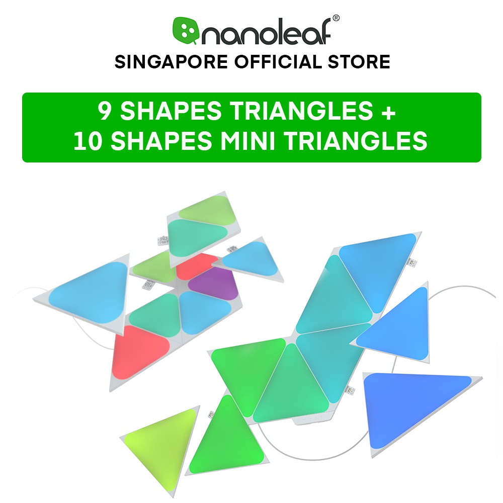 Nanoleaf Shapes Bundle - Triangles Starter Kit (9 panels) + Mini Triangles Expansion Kit (10 panels)