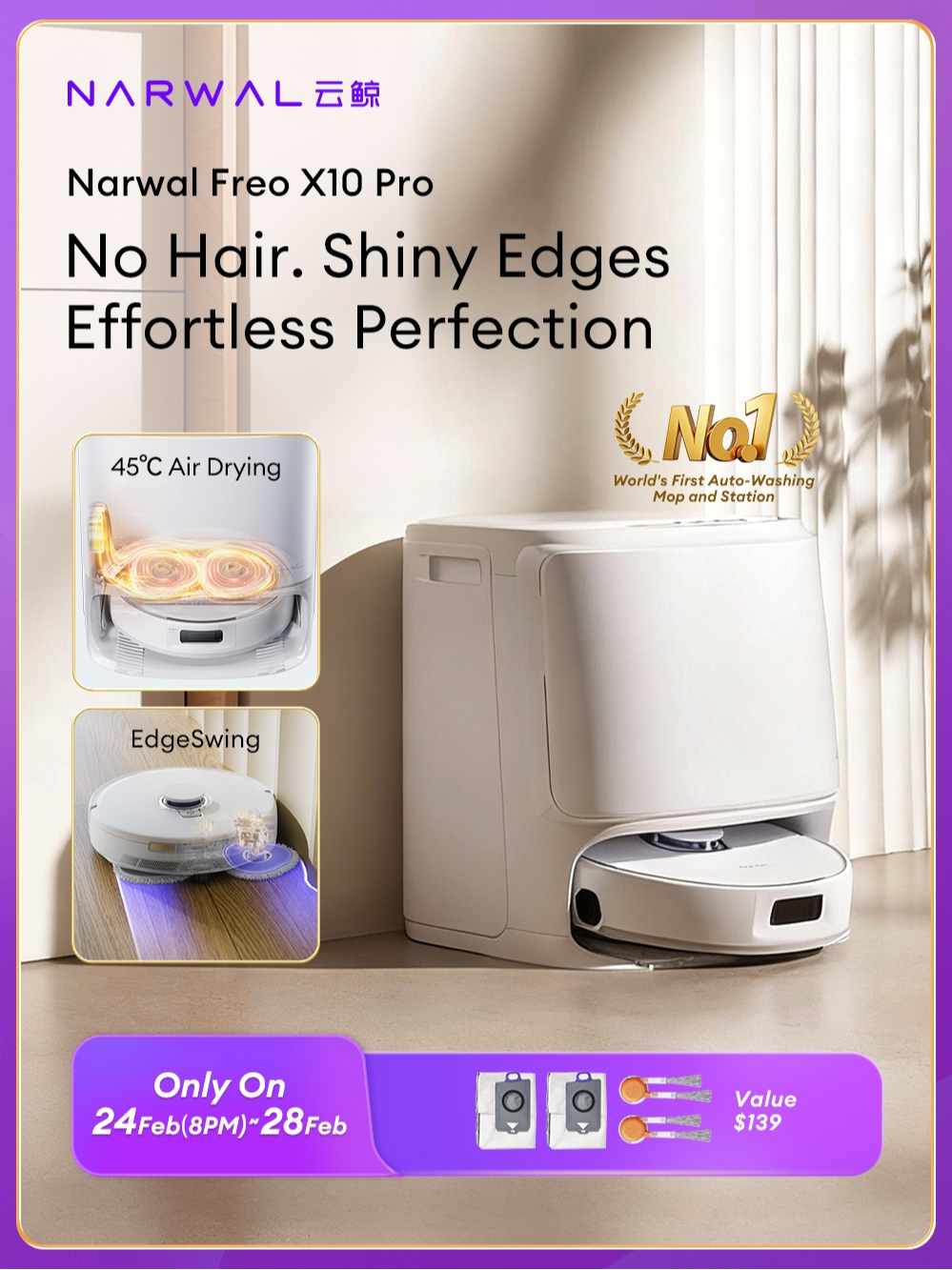Narwal Freo X10 Pro/Z10 /Z10 Ultra Robot Vacuum Cleaner with mop | Tangle-Free | EdgeReach Mop Extension and EdgeSwing