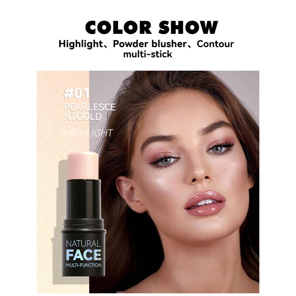 Natural Face Multi-Function Highlighter Stick - All Skin Tones Waterproof Luminizer with Full Coverage, Nature Makeup Effect, Contour & Blush Stick, Easy-to-Apply Stick Form